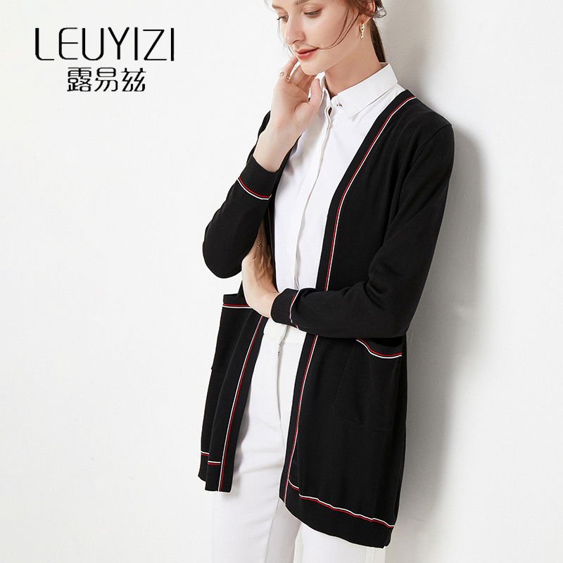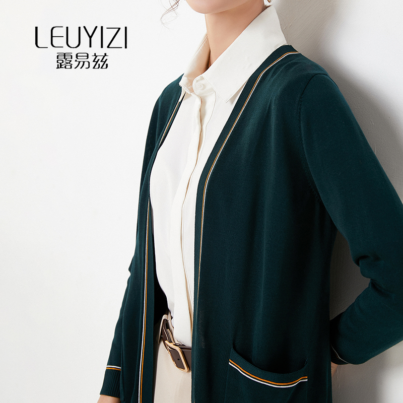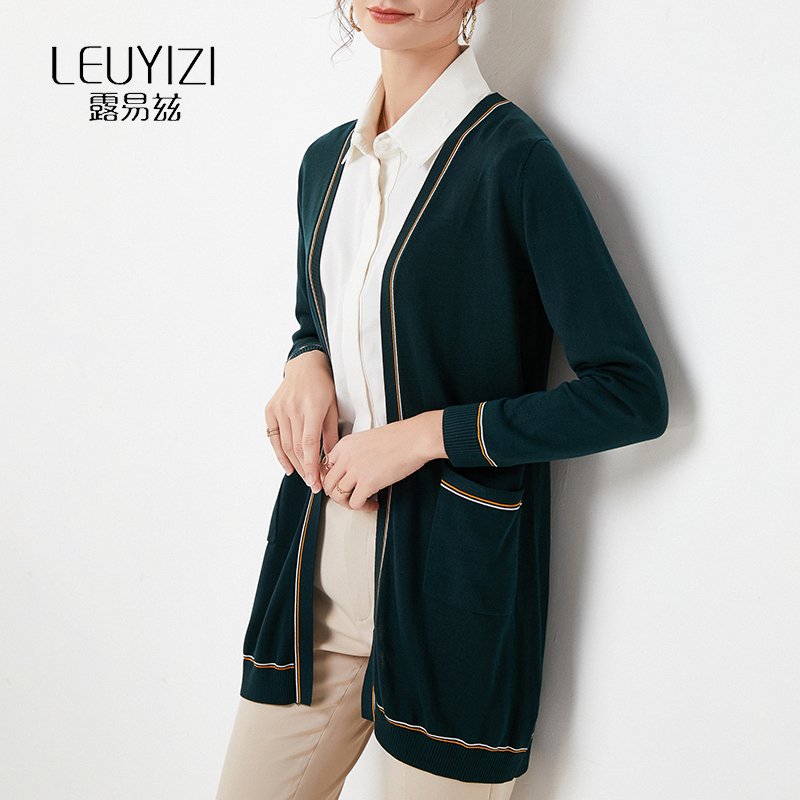 露易兹V领针织开衫外套女中长款大码宽松2020年新款春秋外搭上衣