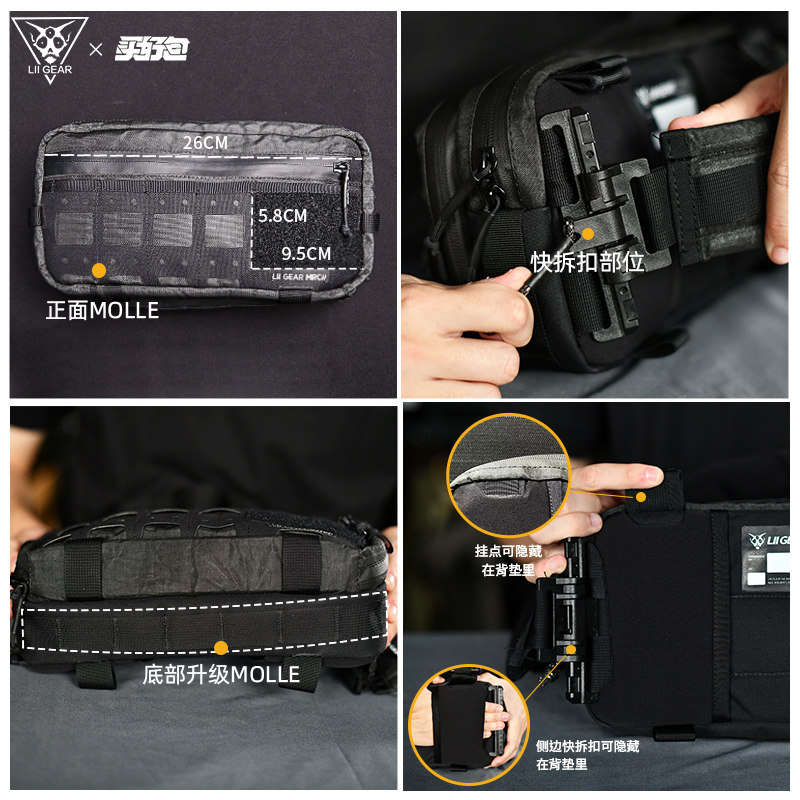 LiiGear控制先生单肩包黑色大力马户外多功能扩展斜挎包胸包二代