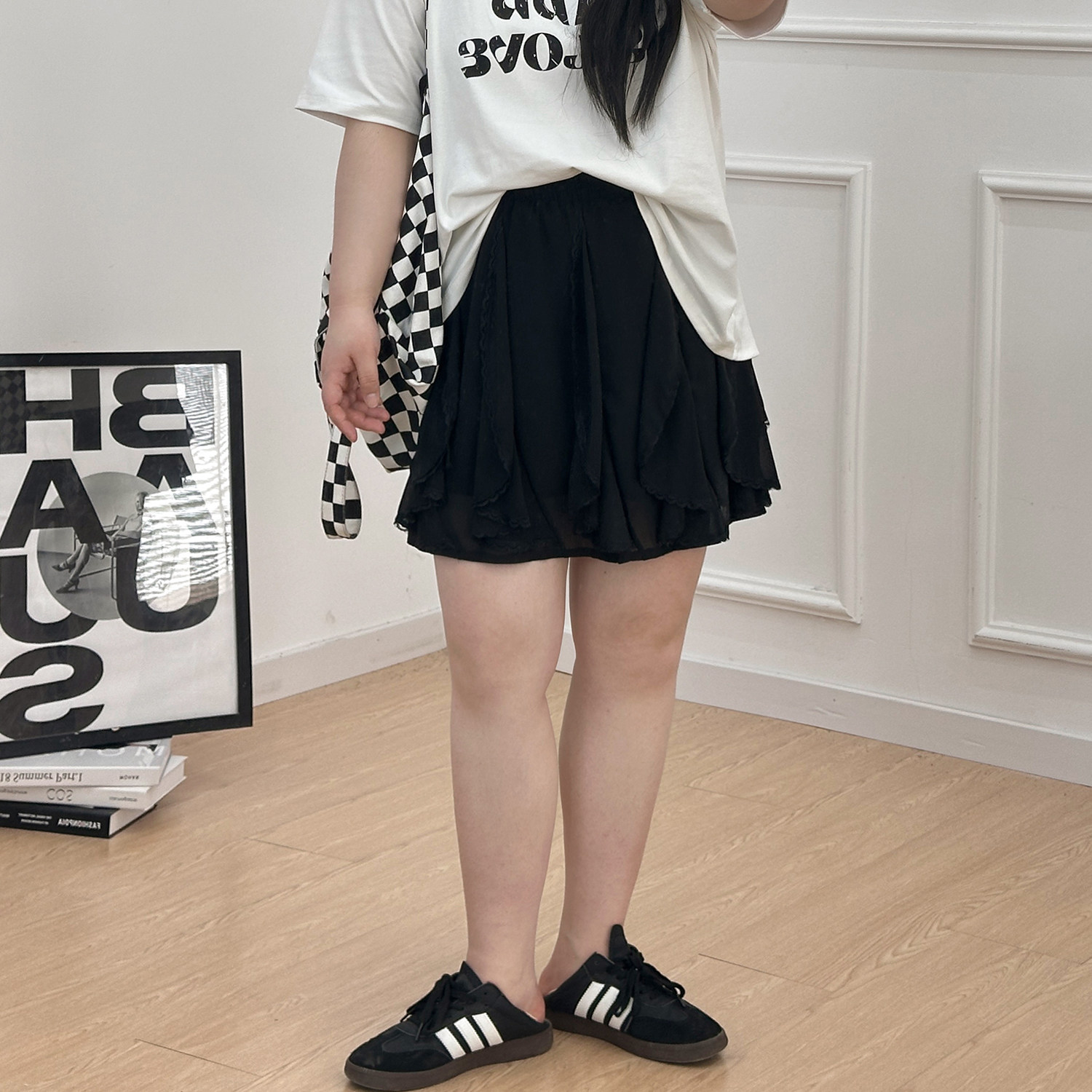 宛宛大码胖MM不规则雪纺短裙女夏高腰显瘦遮胯甜美百搭A字半身裙