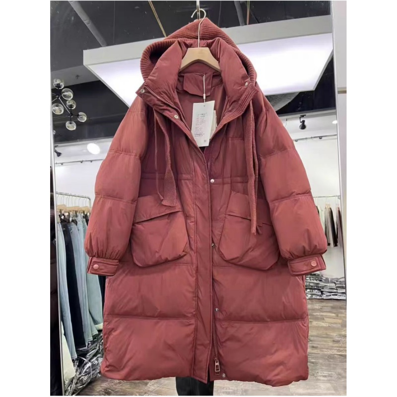 20732可脱卸针织连帽羽绒服白鸭绒百搭宽松时尚过膝加厚保暖外套