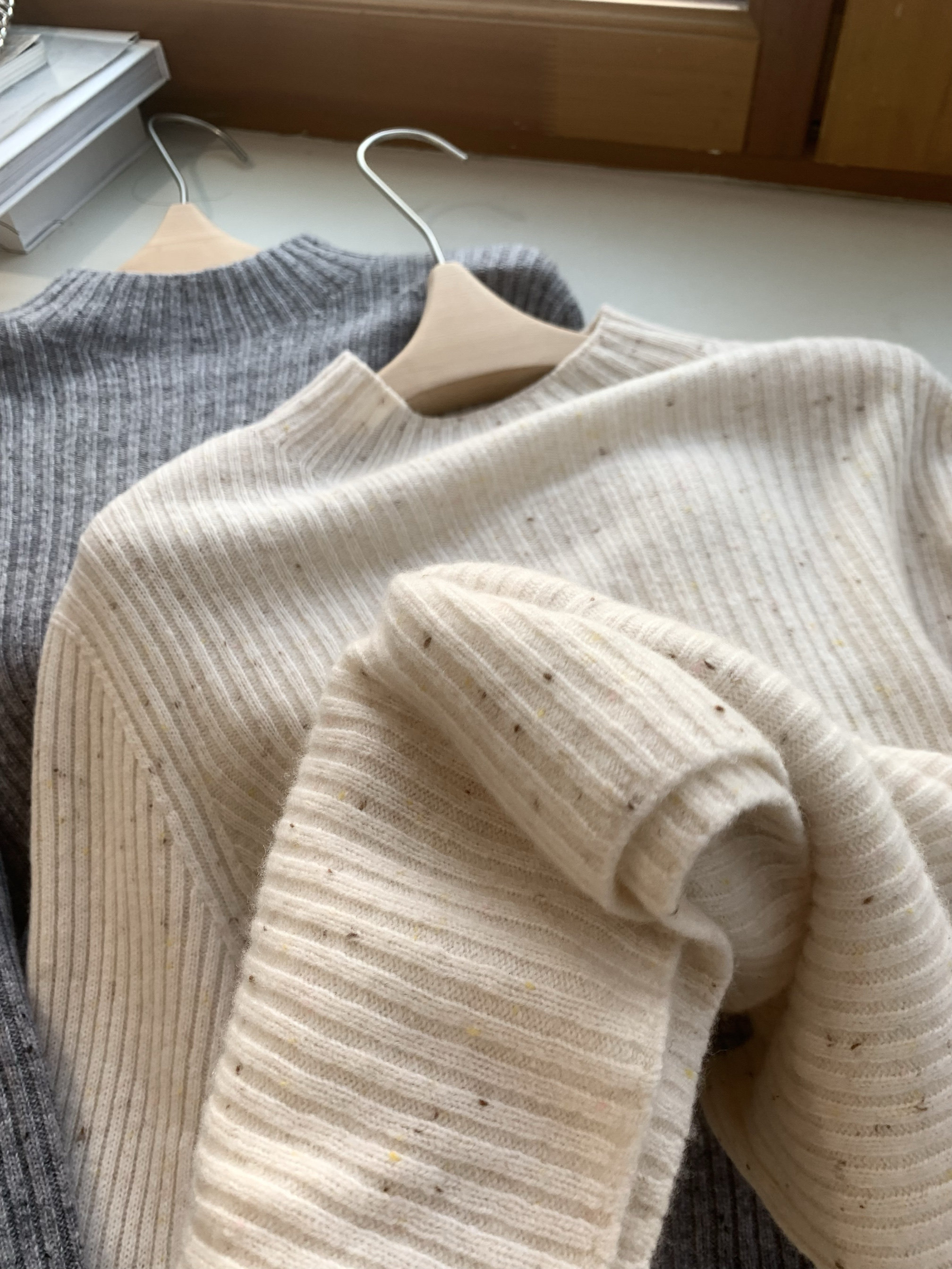 80羊毛 点点纱半高领坑条大弹力打底基础款毛衣杏色灰色女日常
