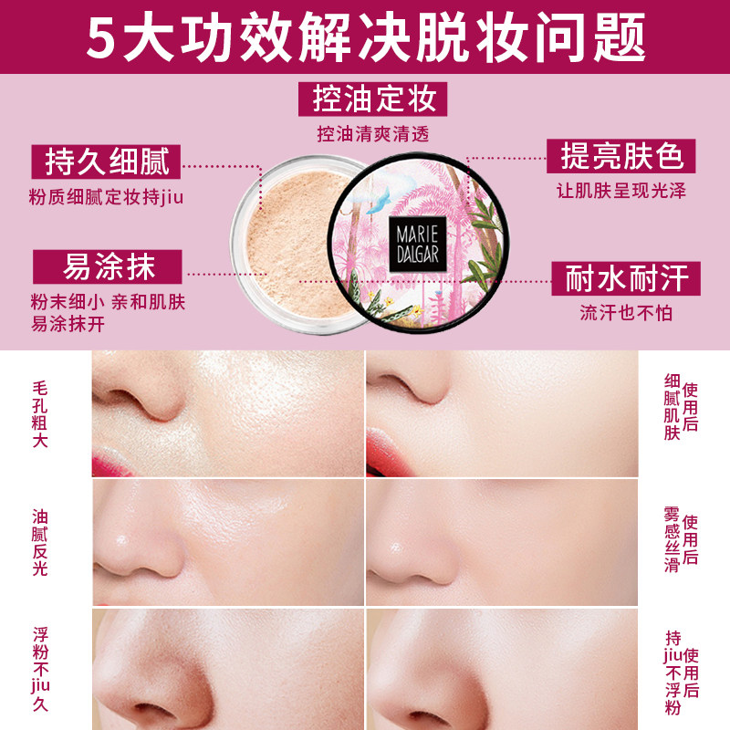 玛丽黛佳散粉定妆蜜粉饼女持久遮瑕控油提亮防水防汗正品不易脱妆