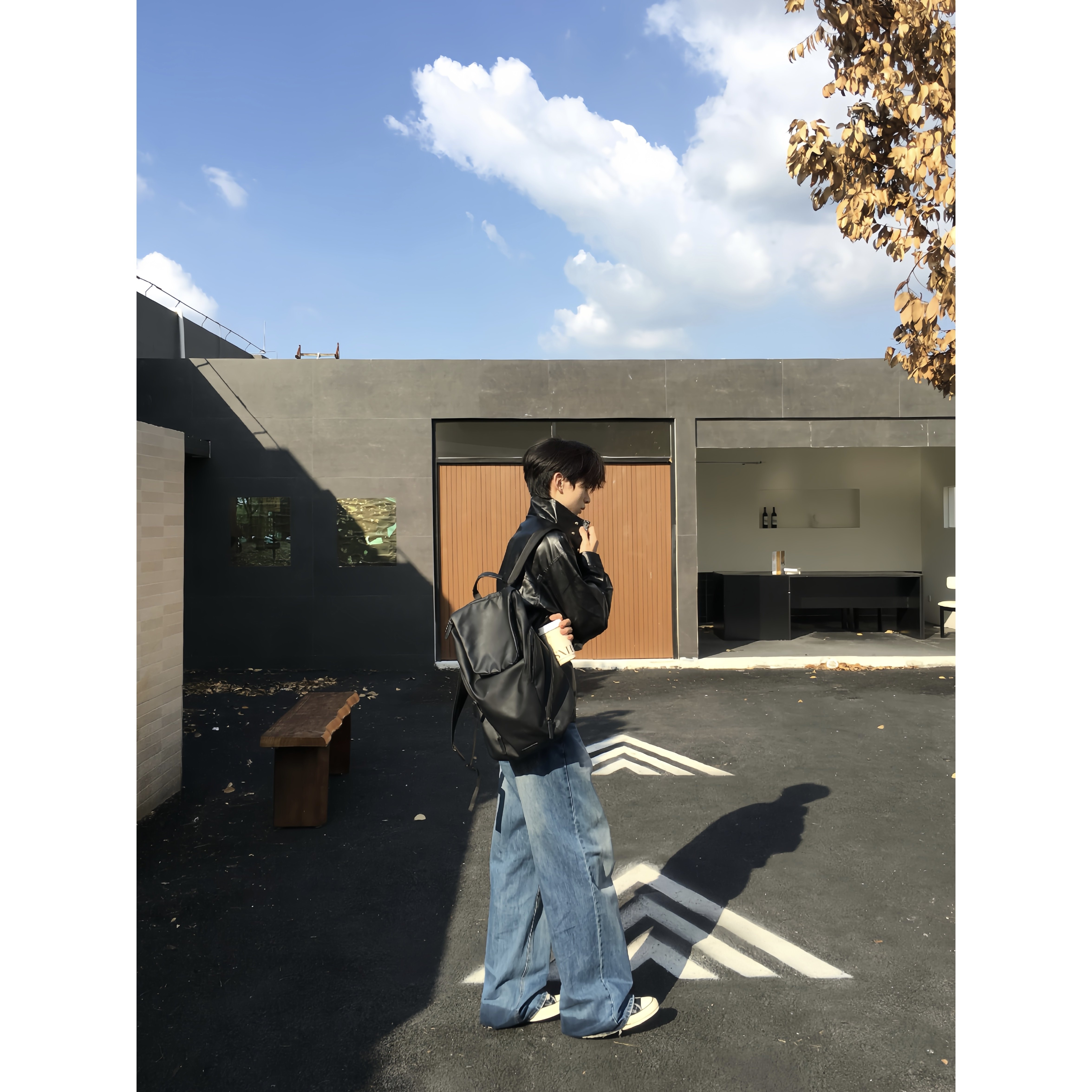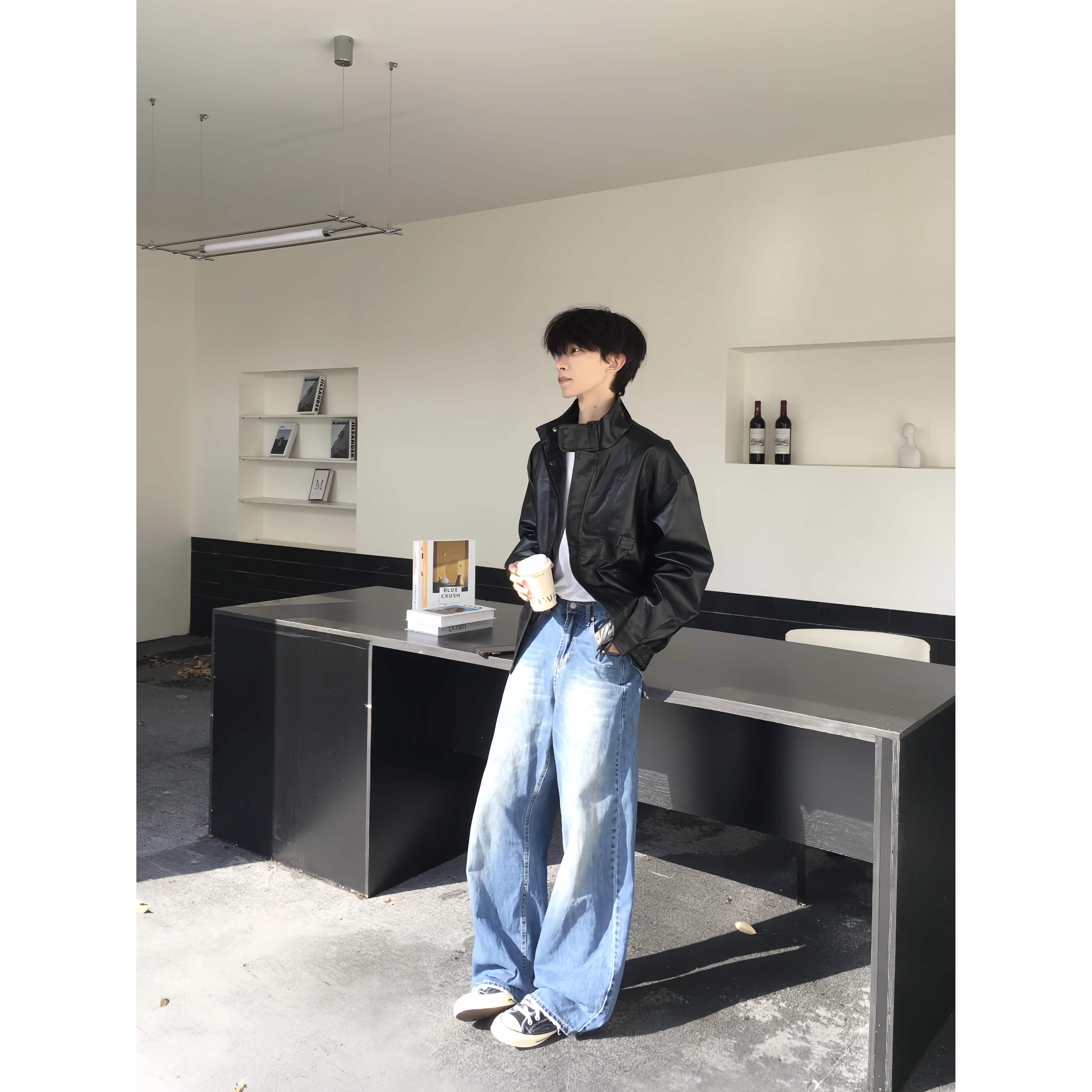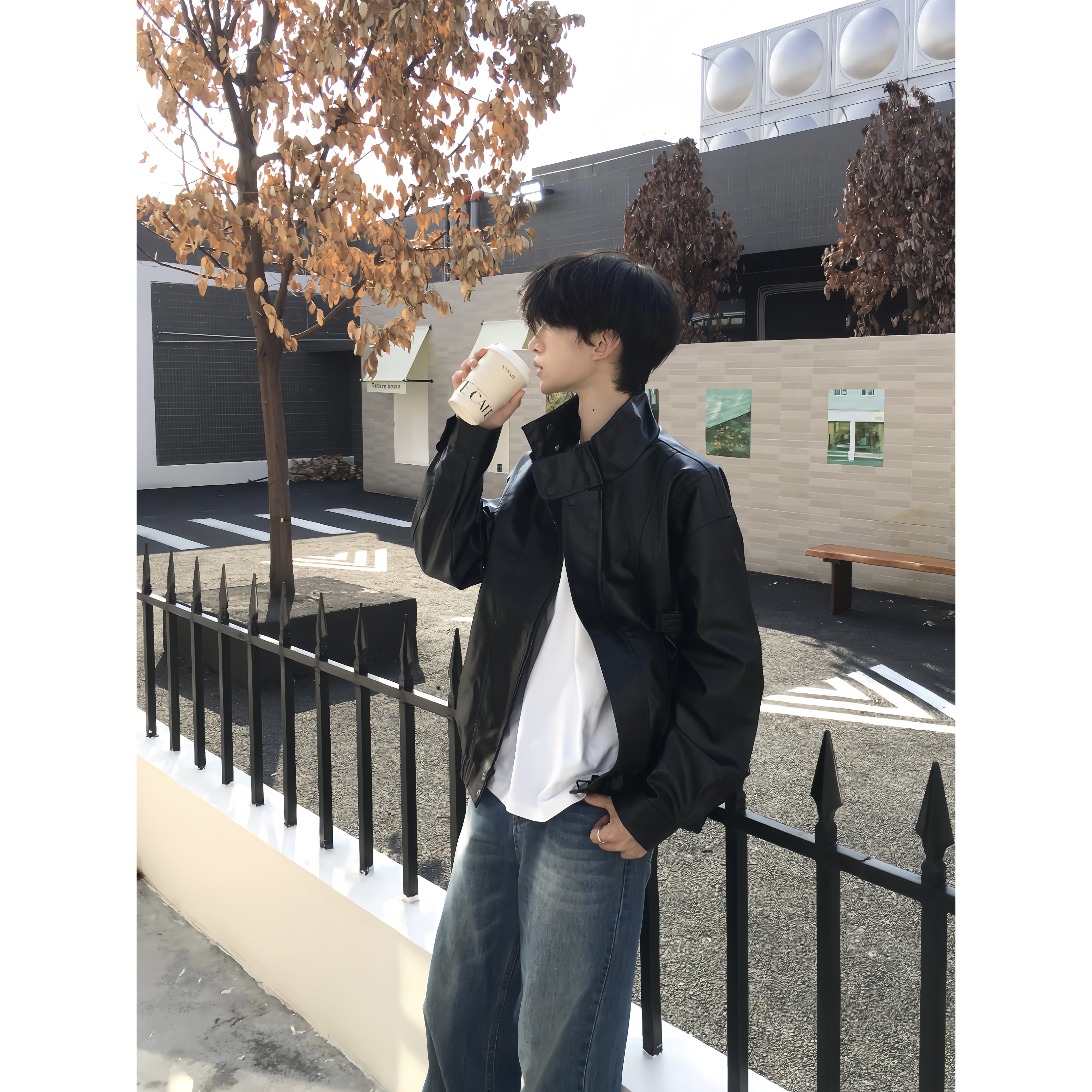 TENEMPTY复古肌理感皮衣立领外套