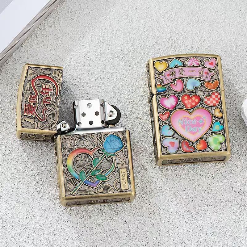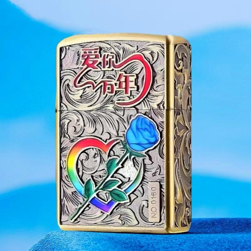 佐罗新款盔甲玫瑰煤油打火机个性夜光浮雕爱你一万年防风送礼男友