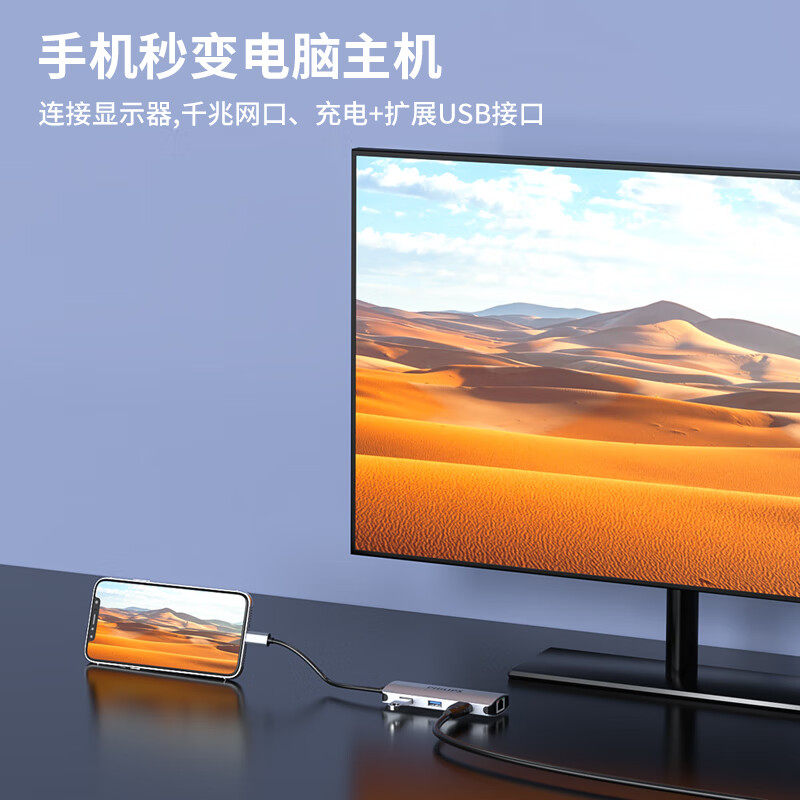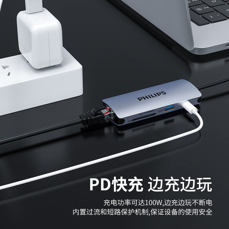 飞利浦拓展坞Typec扩展USB分线器hub集线器雷电4HDMI投屏多接口网线转换器转接头笔记本电脑iPad平板手机配件