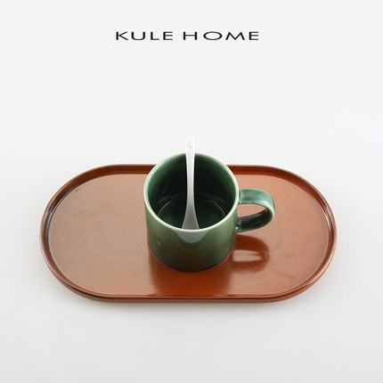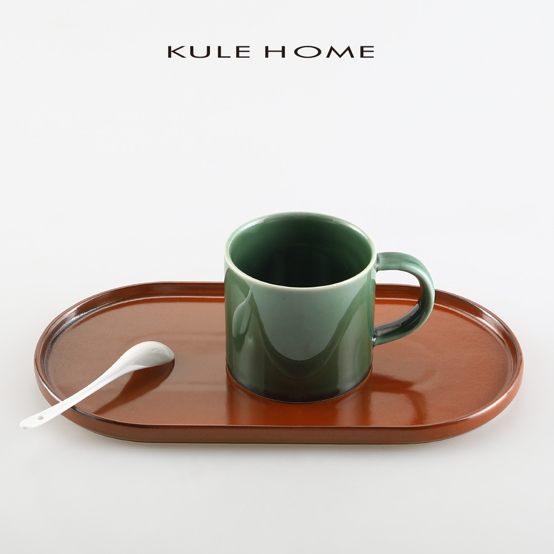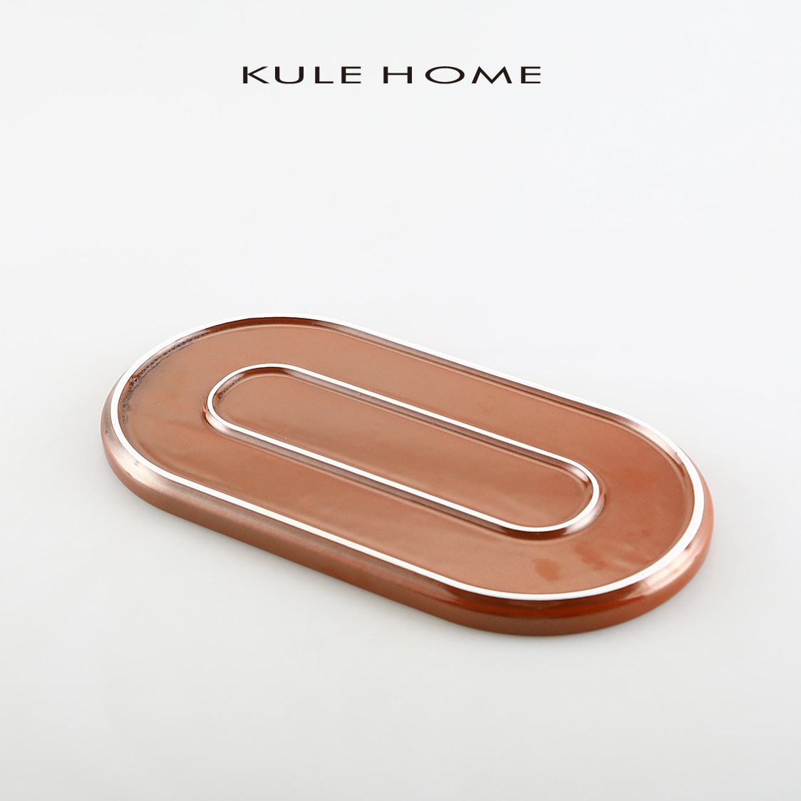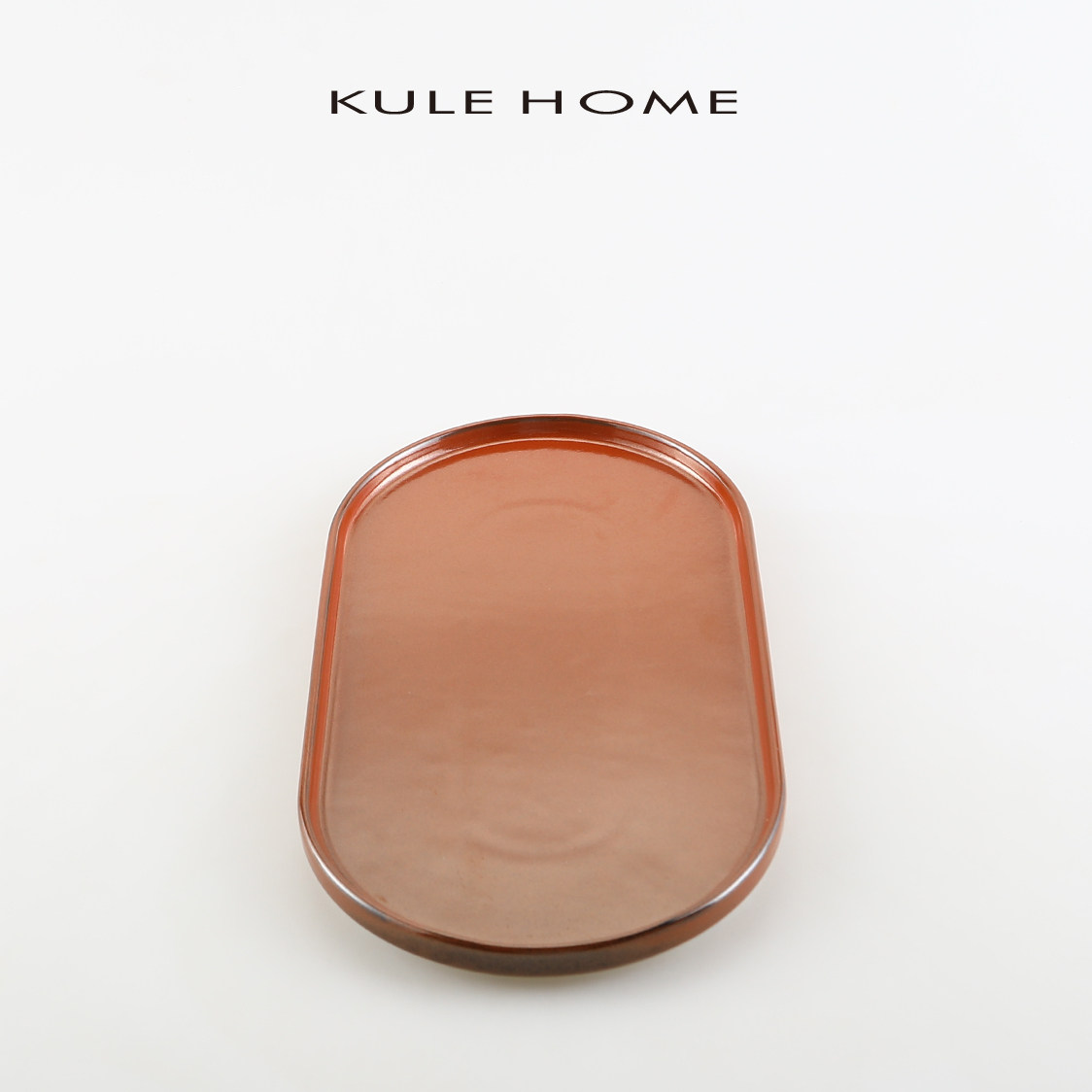 KULE HOME 创意褐色椭圆托盘欧式陶瓷轻奢现代客厅茶几水果盘餐盘