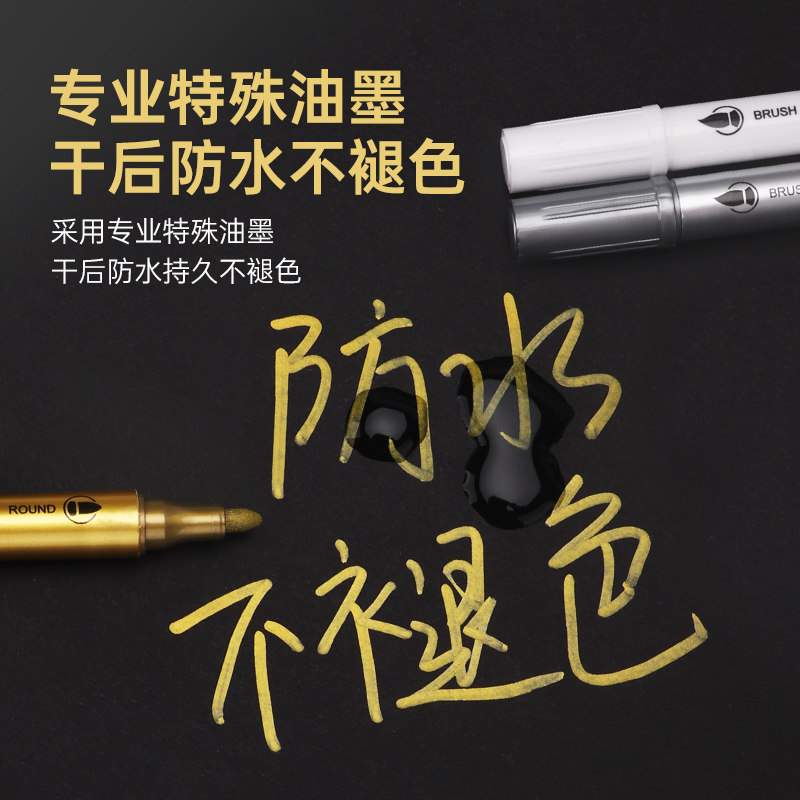 宝克金色签字笔粗头签名笔金属丙烯马克笔防水防油不掉色签到笔美术专用白色高光笔银色明星嘉宾签到墙签字笔