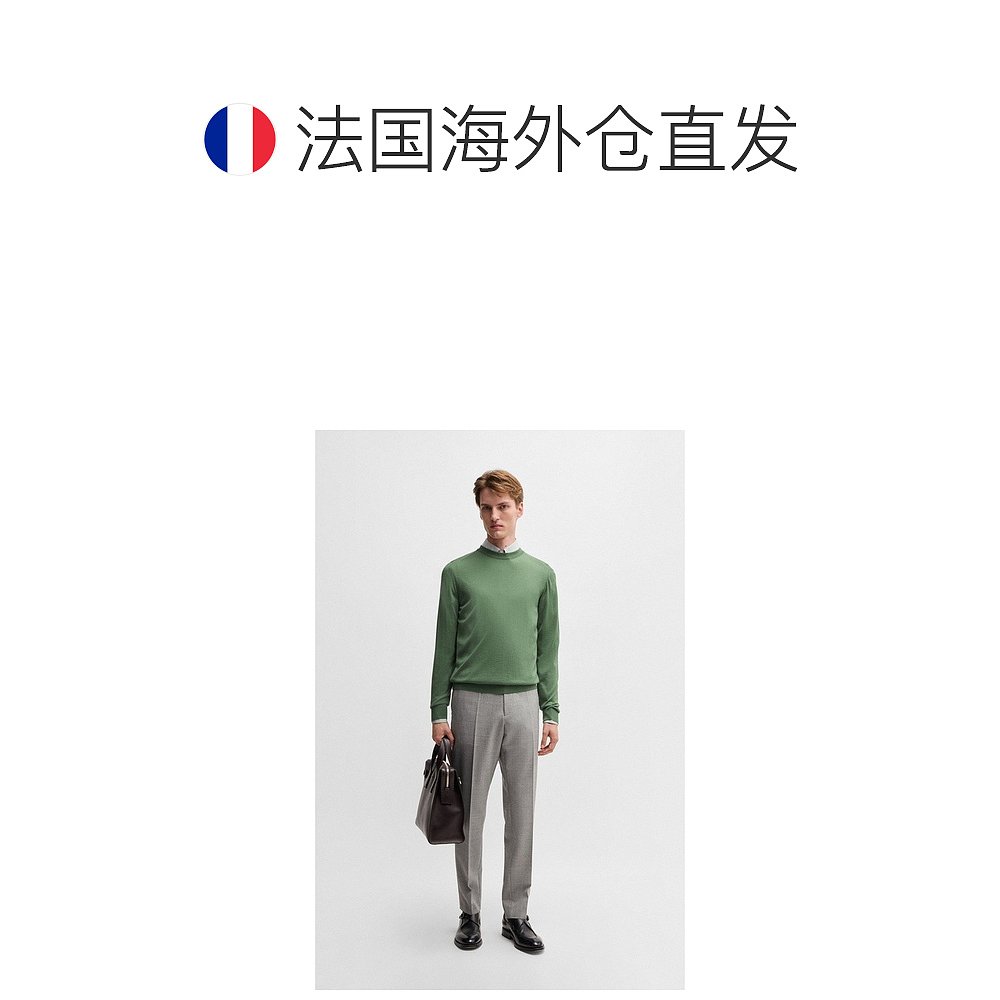 自营欧洲直邮Hugo Boss雨果BOSS CAMEL 男士绿色羊毛毛衣新款