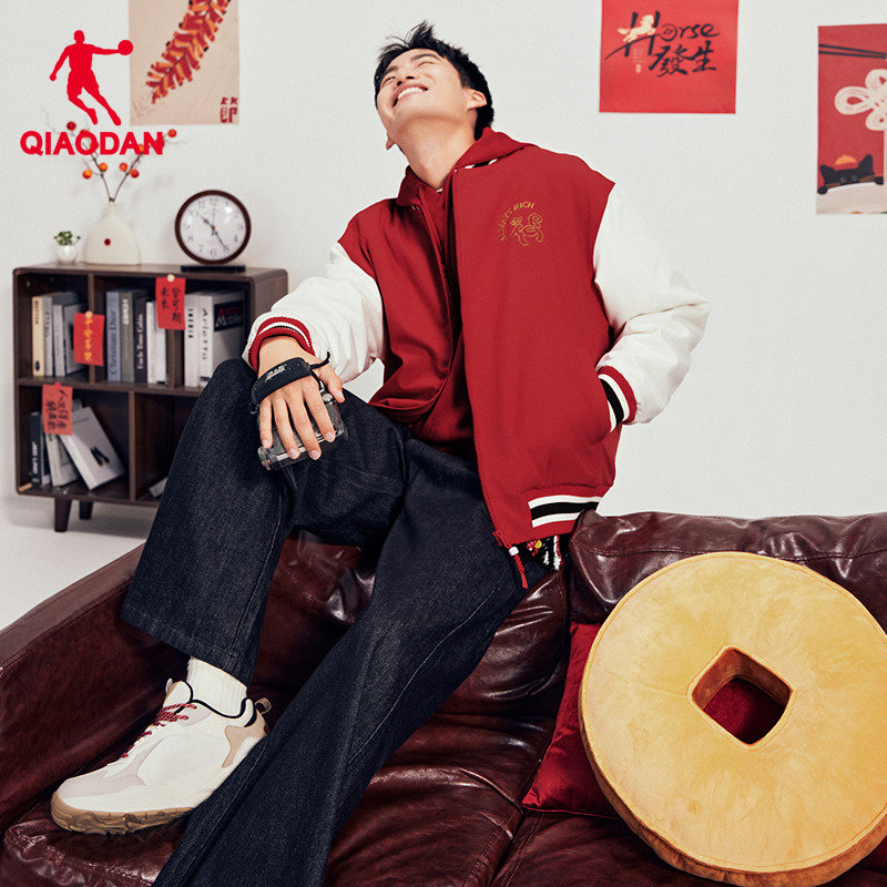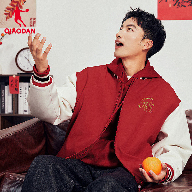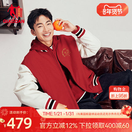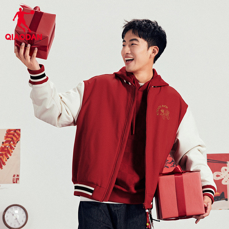 乔丹红色棉服男士2025冬季新款商场同款抗静电马上有钱新年本命年