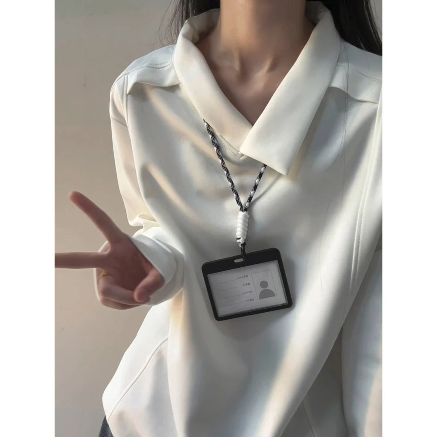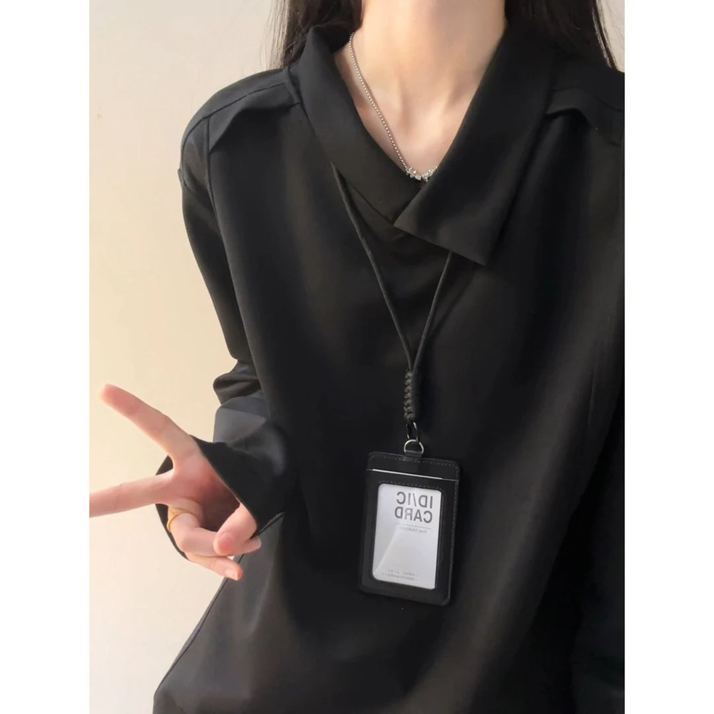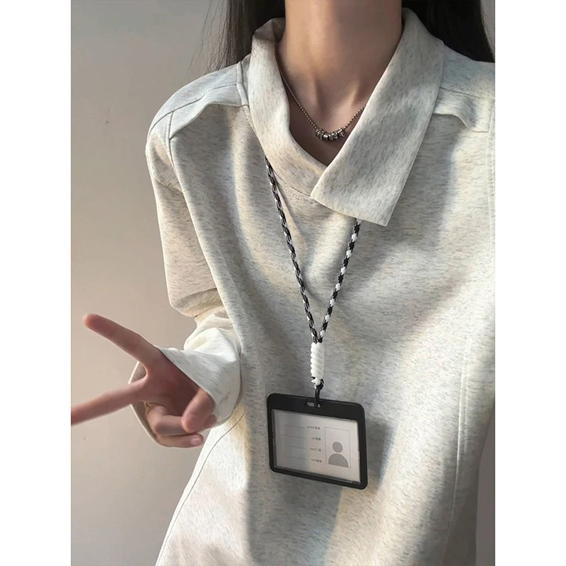 浅灰色超好看正肩polo衫男女早秋薄款卫衣美式不规则翻领长袖t恤
