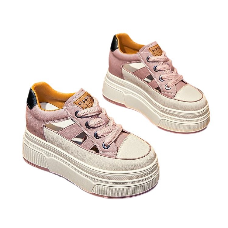松糕鞋厚底女凉鞋2025春夏新款鞋子小个子显高镂空内增高小白鞋