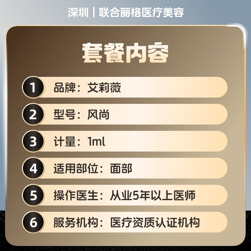 【到店医美】深圳联合丽格医疗美容艾莉薇风尚玻尿酸1ml*1支