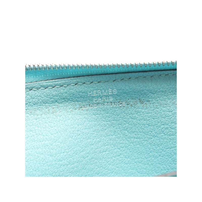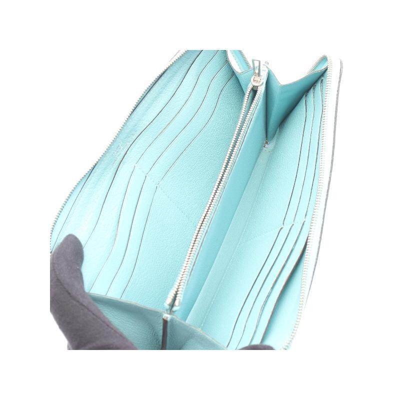 中古Hermes爱马仕女B级9新Azap Long牛皮长钱包蓝色