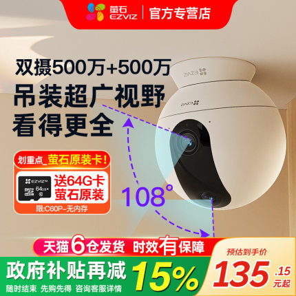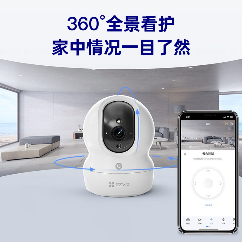 萤石监控家用手机远程摄像头360度全景无死角摄影莹海康威视C60p