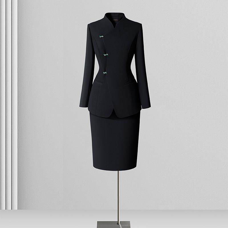 职业西装套装女气质高级感黑色中式西服酒店前台工装珠宝店工作服