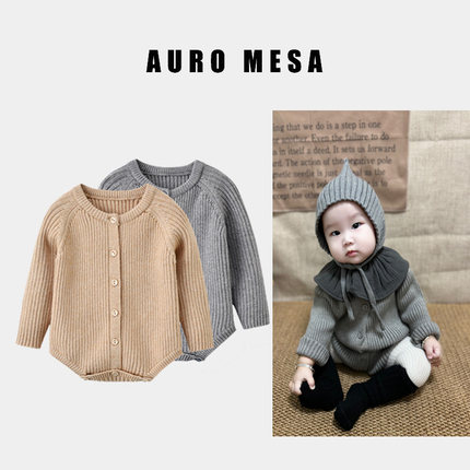 ins春秋婴儿针织包屁衣男女宝宝柔软连体毛衣新生儿长袖三角哈衣