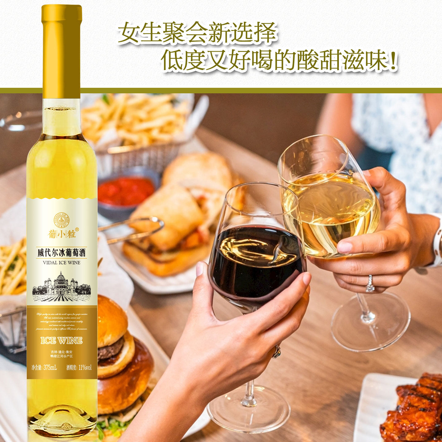 葡小粒 威代尔冰葡萄酒 吉林集安冰酒女士原汁红酒果酒甜白葡萄酒