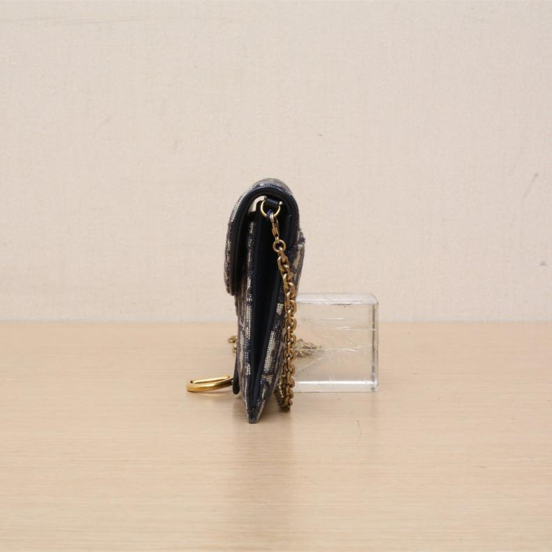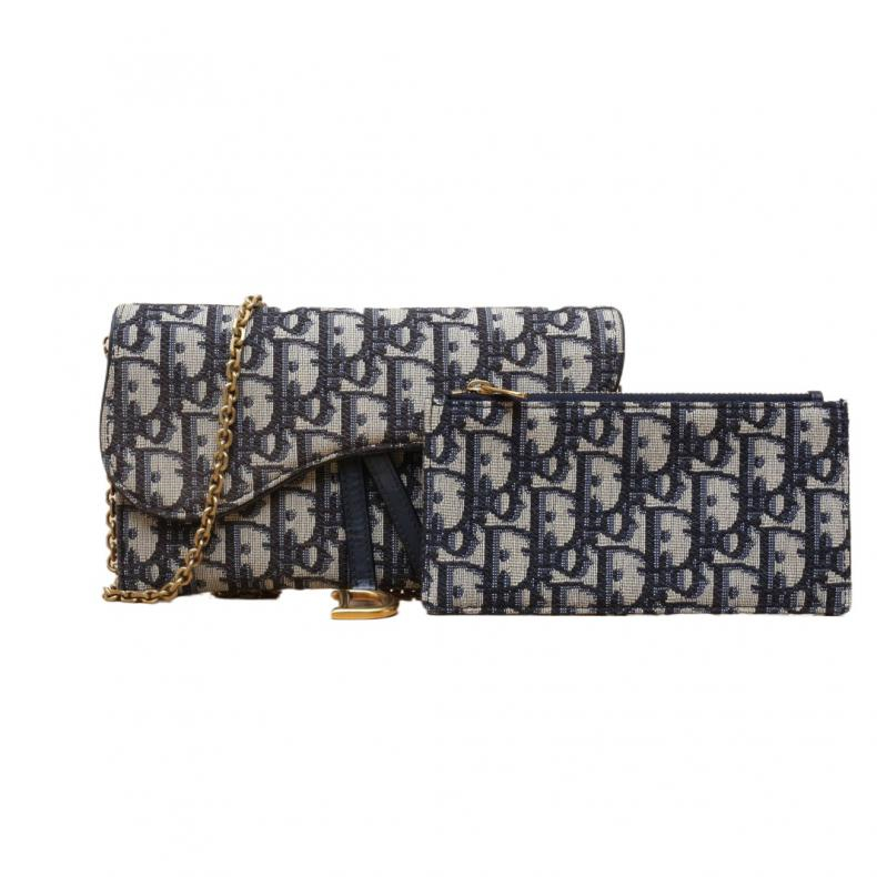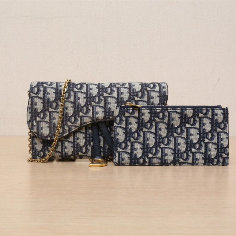 【自营】中古95新Dior/迪奥单肩包马鞍链条WOC二合一墨蓝色帆布