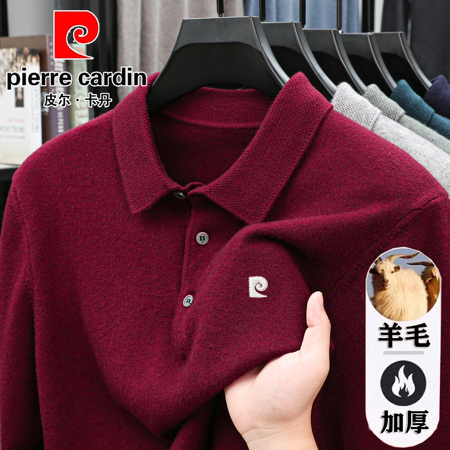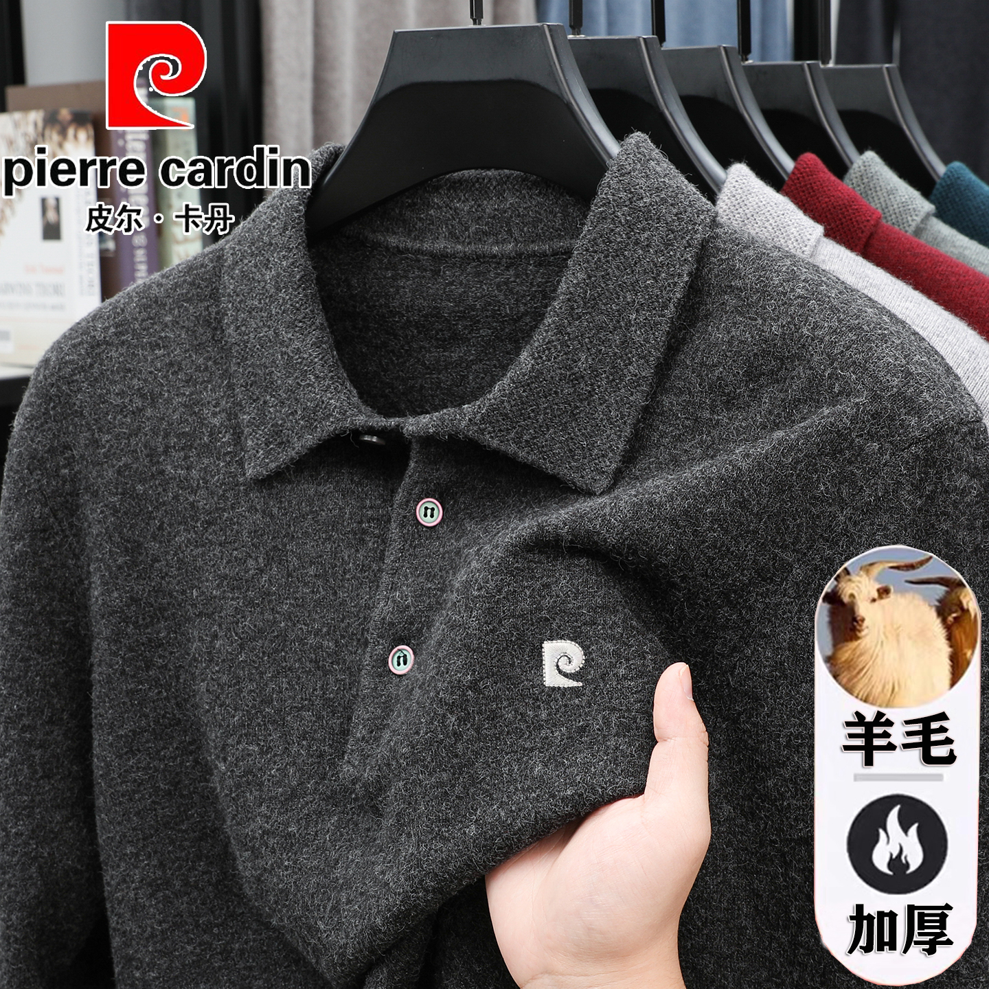 皮尔卡丹中年男士羊毛衫翻领加厚