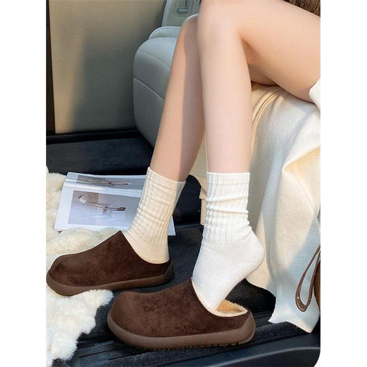 2025新款毛毛鞋女款秋冬季一脚蹬懒人包头加绒半拖鞋外穿博肯鞋子