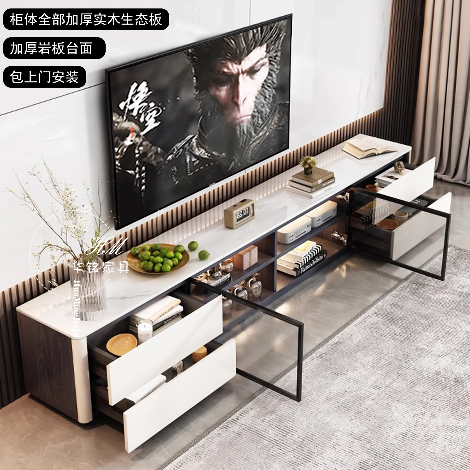 实木岩板电视柜茶几组合小户型客厅2025新款落地储物一体电视机柜