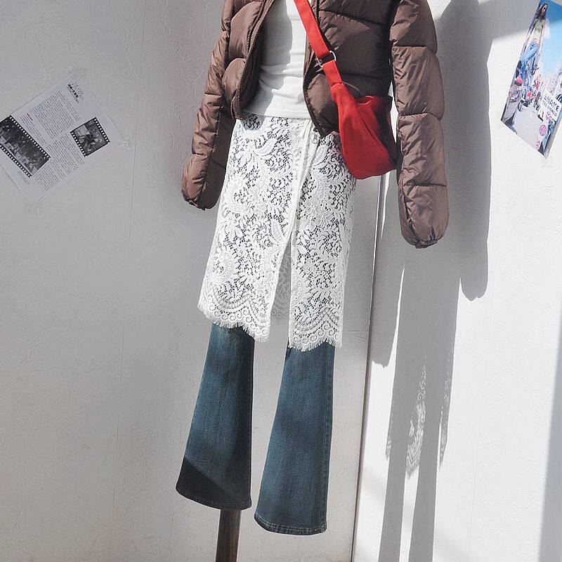 24春原创一片式系带网纱蕾丝屁帘裙帘罩裙围裙叠穿半身裙睫毛流苏