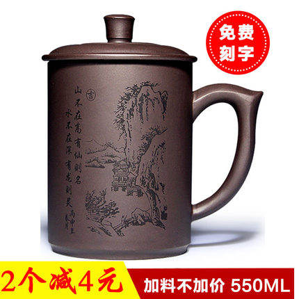 宜兴男士大容量紫砂杯水杯带盖泡茶杯茶具办公室陶瓷杯子定制刻字