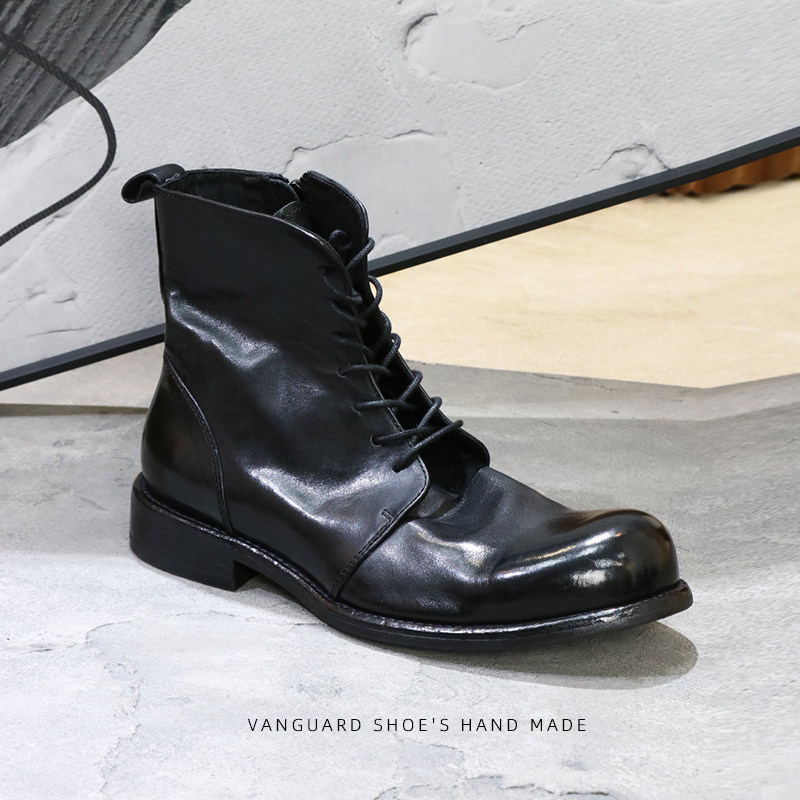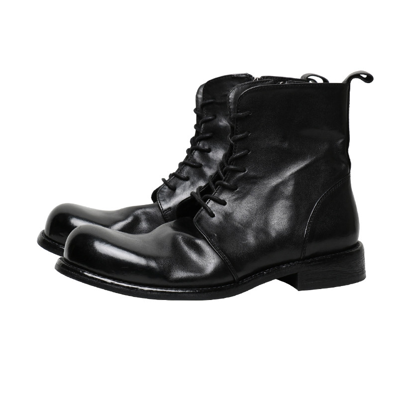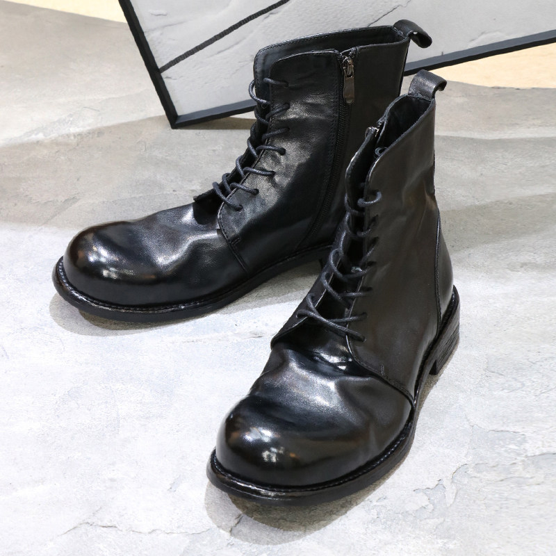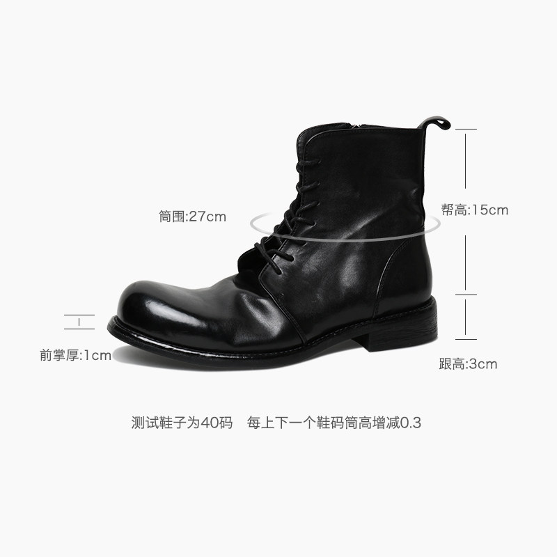 优100马皮大头拉链马丁靴复古褶皱水洗高帮男士皮靴休闲皮鞋短靴