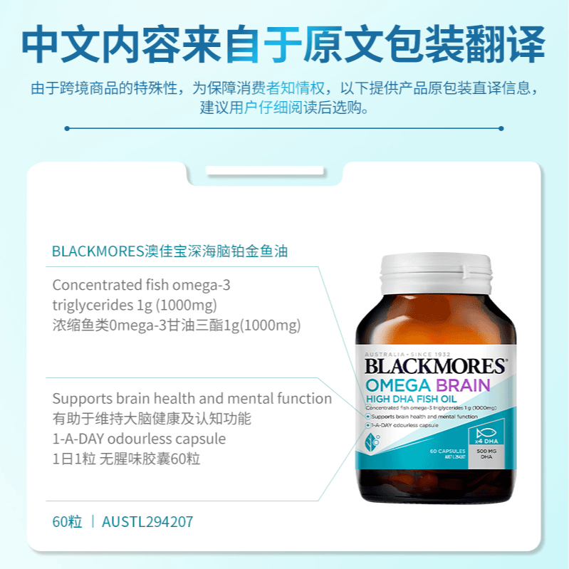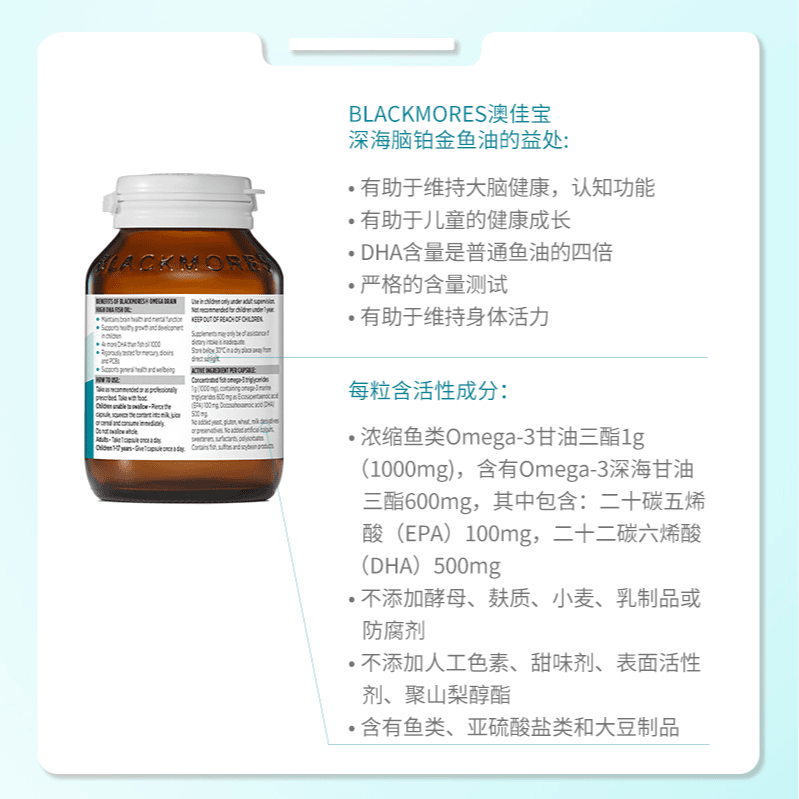 澳佳宝深海脑铂金鱼油60粒/瓶四倍成人DHA高浓度鱼油护眼
