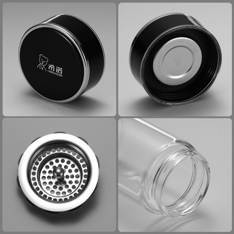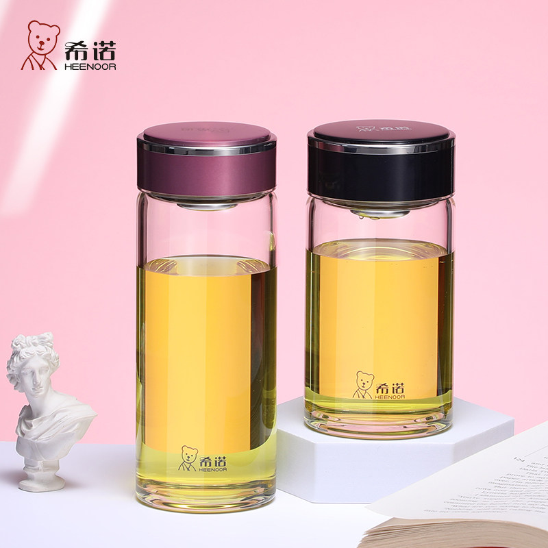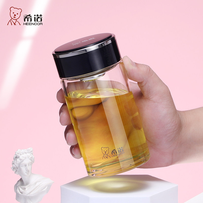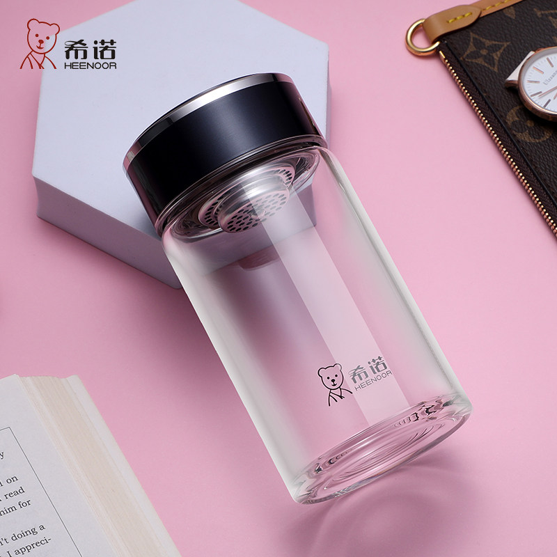 希诺单层加厚玻璃杯小巧便携式带滤网男女士泡茶水杯透明水晶杯了