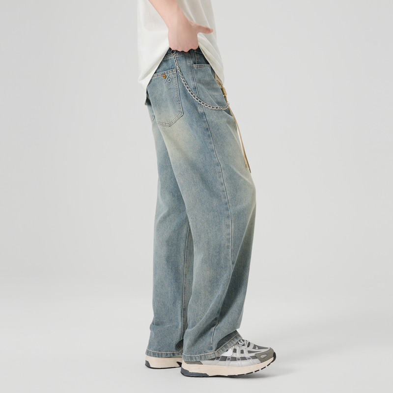 快鱼2025秋季新款男士牛仔阔腿直筒裤宽松百搭休闲时尚松紧腰长裤