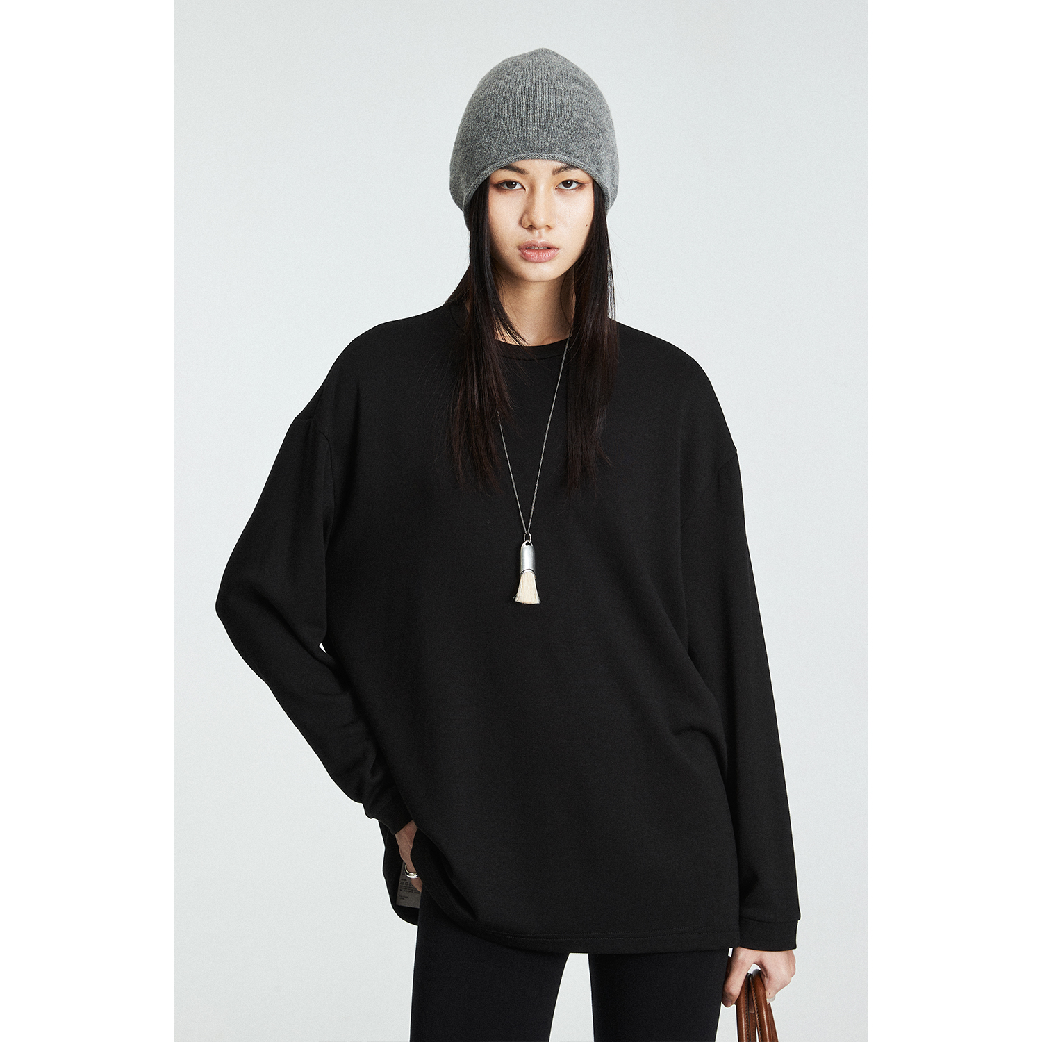 经典内搭莫代尔圆领长袖磨毛T恤
