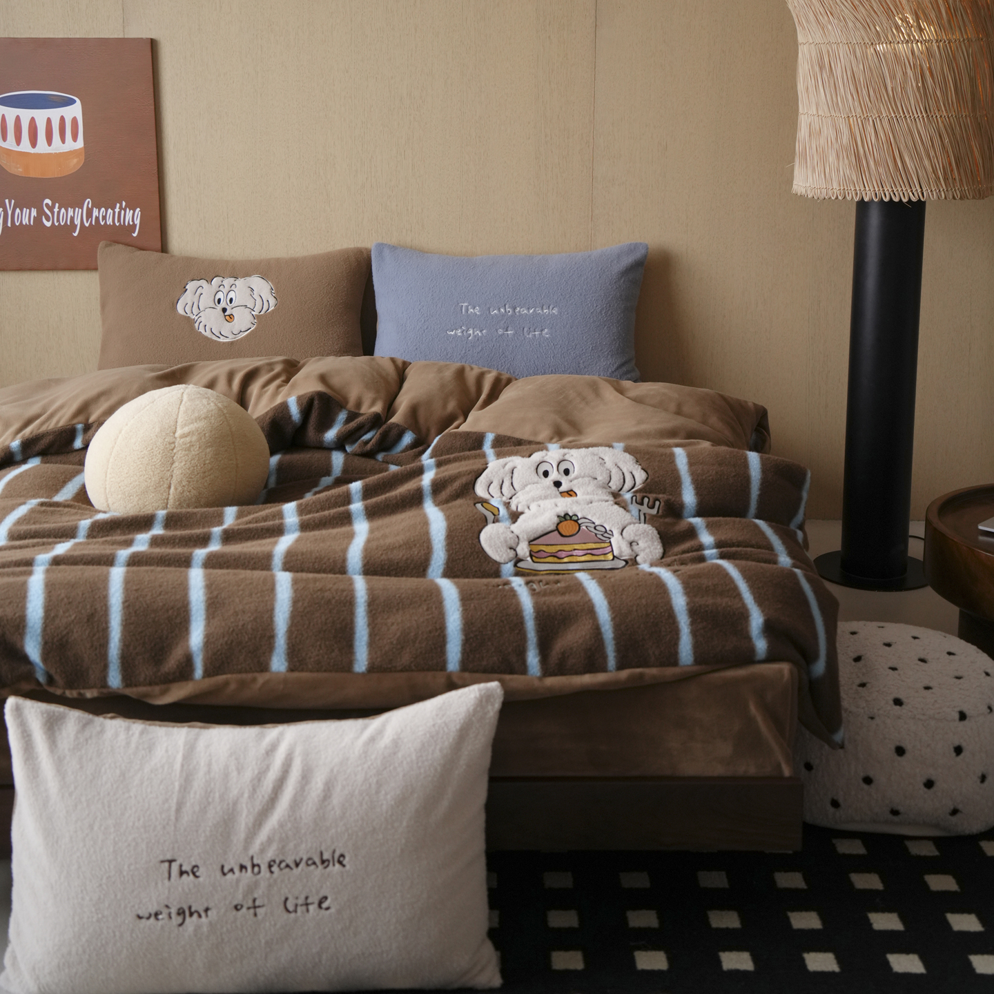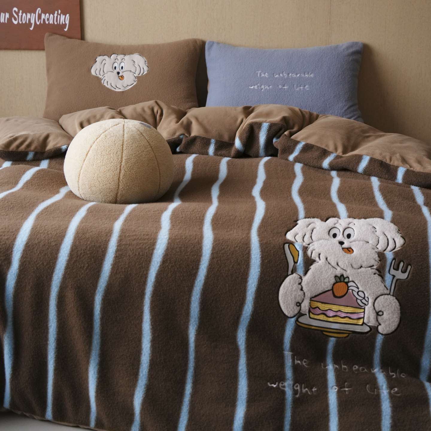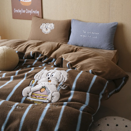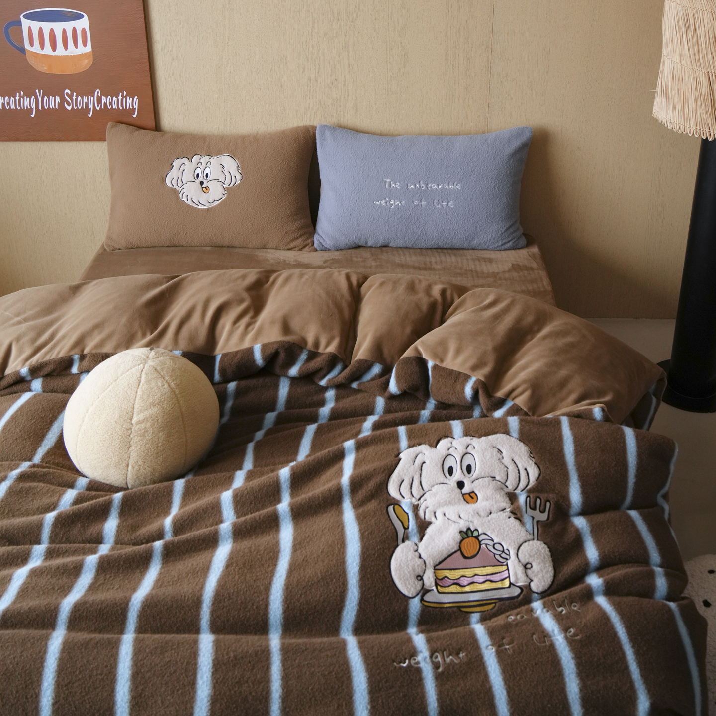 可爱狗狗秋冬软萌保暖仿羊毛绒四件套卡通童趣加厚牛奶绒床品床笠