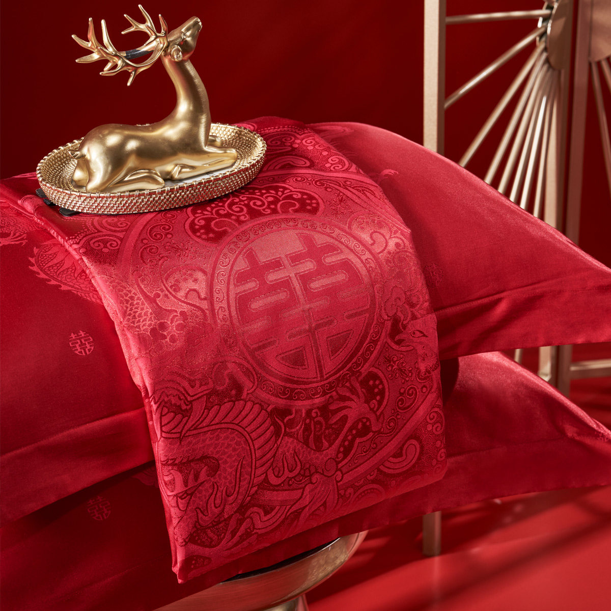 水星家纺大红色新婚喜被四件套
