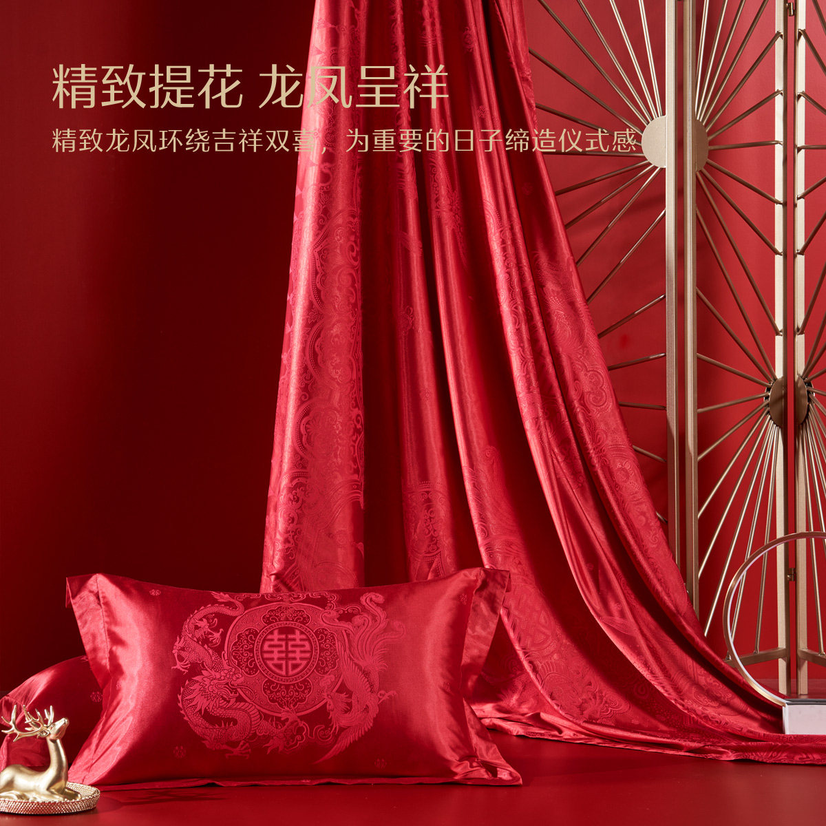 水星家纺婚庆四件套大红色床单被套结婚四件套婚床上用品新婚喜被
