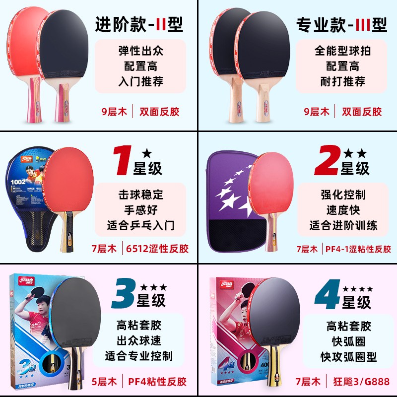 红双喜2只装乒乓球拍正品套装官方兵乓球拍小学生初学者横拍专业