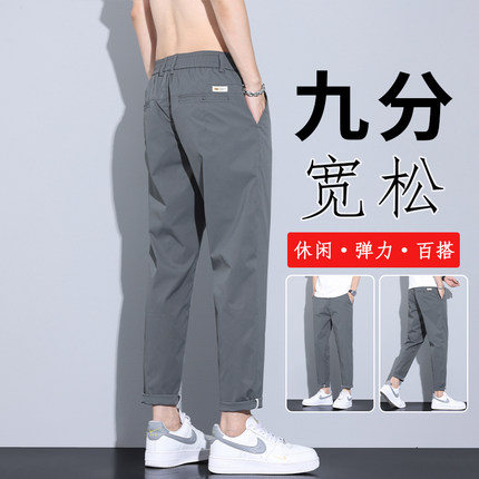 夏季薄款休闲裤男款2025新款男裤运动长裤宽松直筒商务九分裤子男