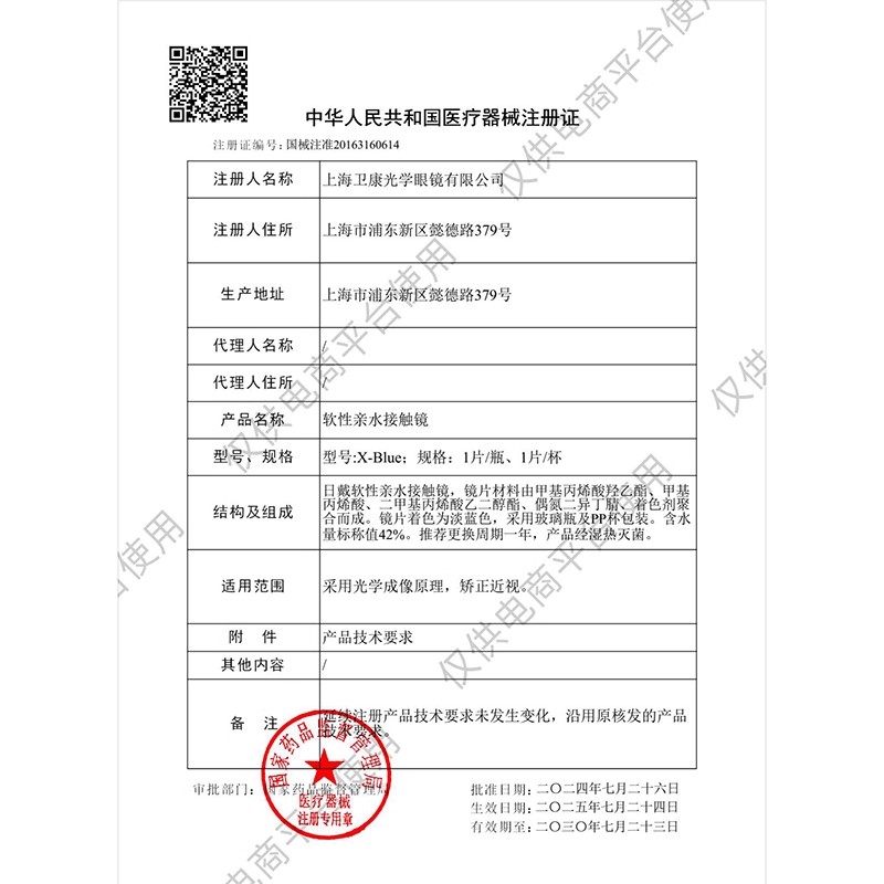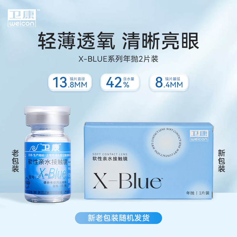 卫康x-blue金装魅标品亮明隐形眼镜年抛2片高度数近视镜片正品SL