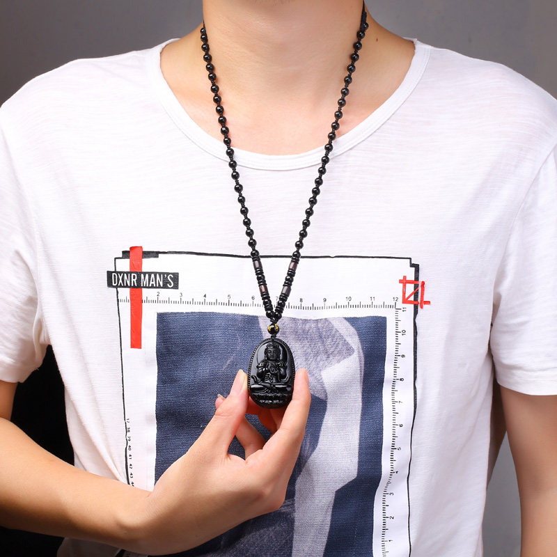 天然黑曜石本命佛吊坠项链男女款大日如来生肖属羊猴守护神水晶