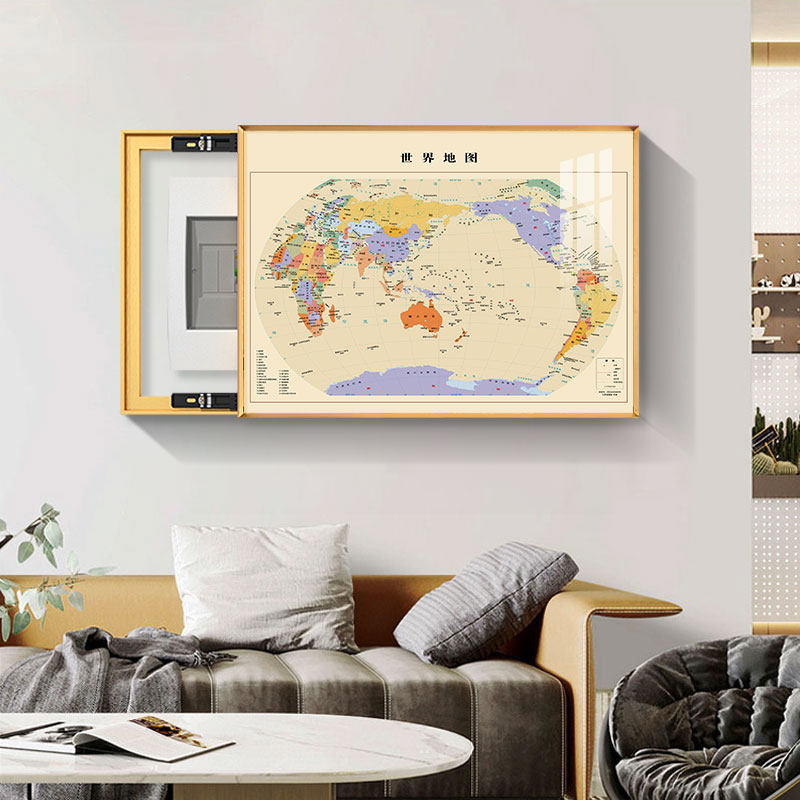 世界中国城市地图定制电表箱装饰画餐厅电闸挂画办公室电箱装挂画
