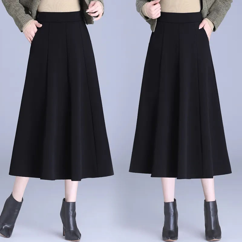 黑色西装百褶裙女伞裙2024夏季新款西显瘦遮胯垂感长裙a字半身裙