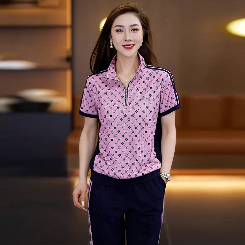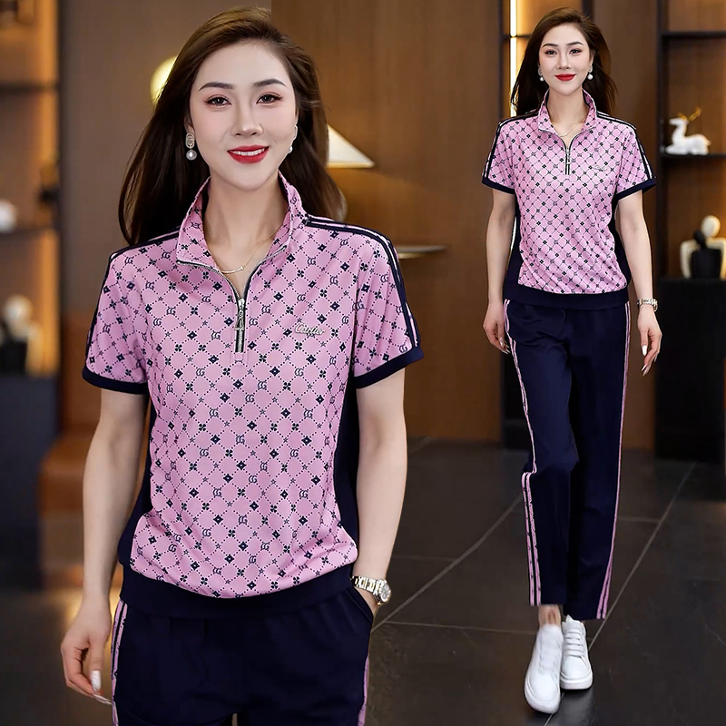 时尚休闲套装女夏装新款显瘦短袖阔腿裤运动服洋气减龄气质