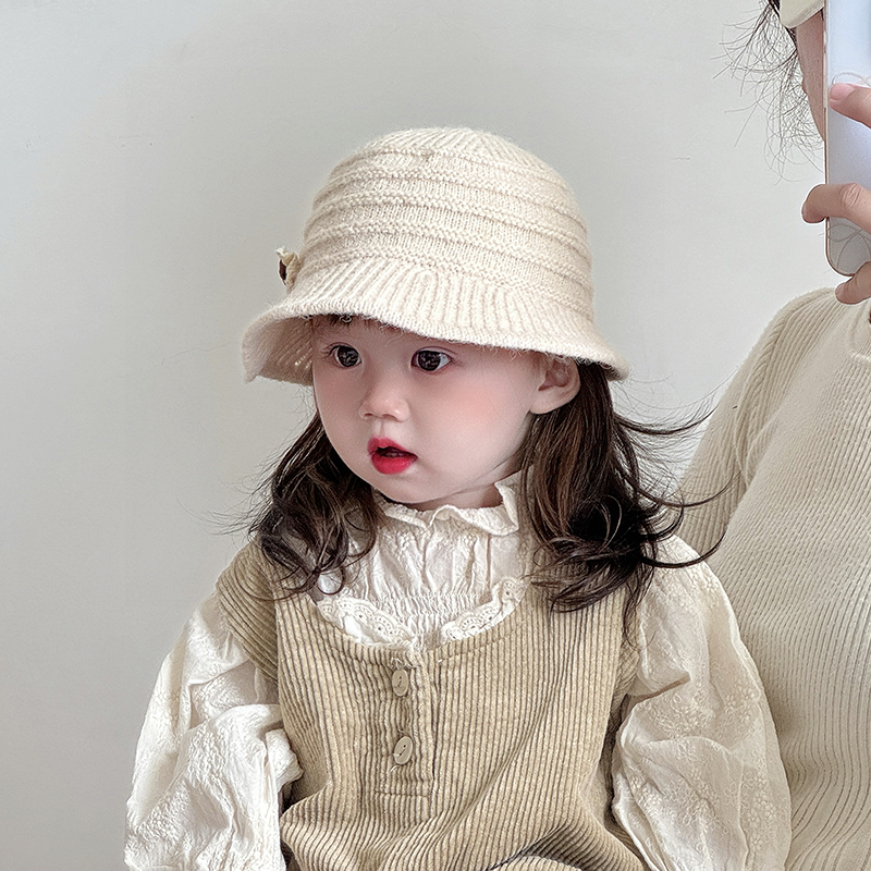 儿童帽子秋冬季保暖针织水桶帽女宝宝防风出游遮阳毛线渔夫盆帽潮