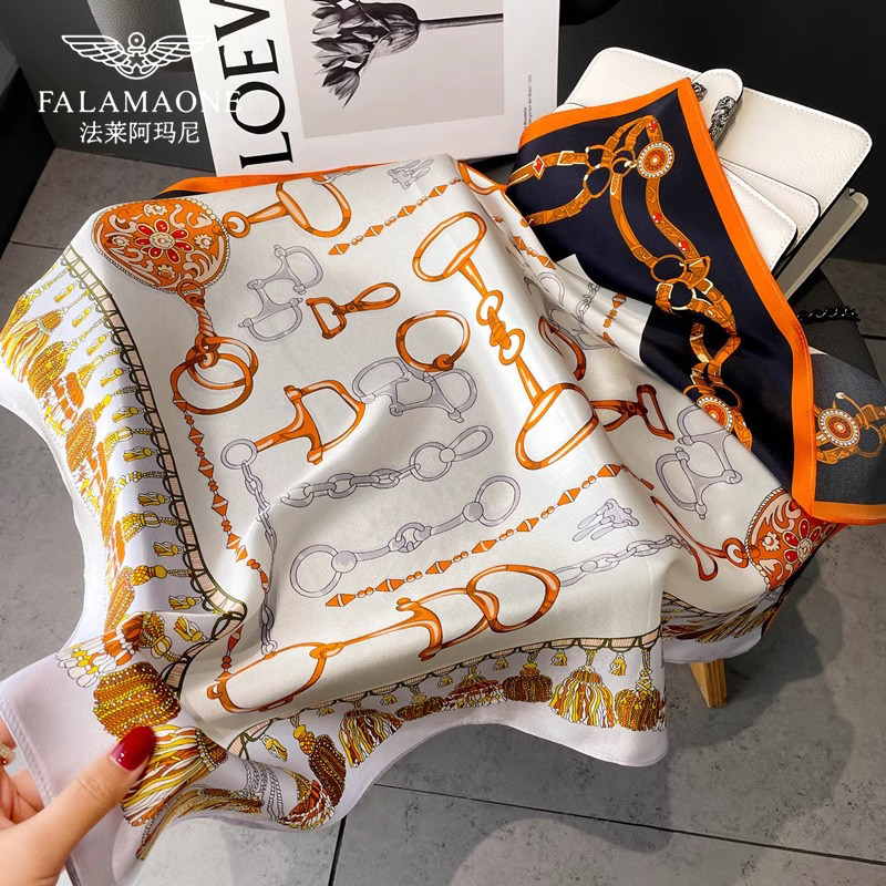 法莱阿玛尼丝巾女款2025新款真丝丝巾小方巾女春秋100%桑蚕丝领巾