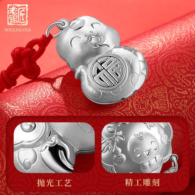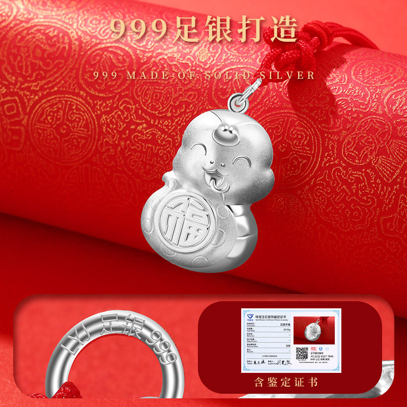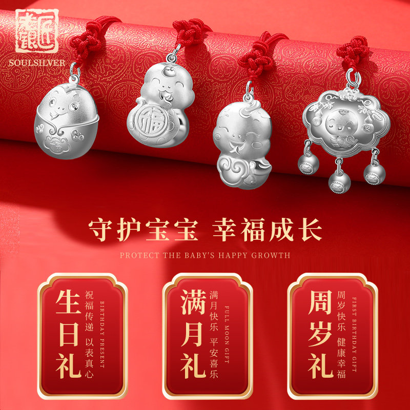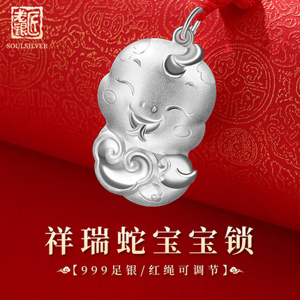 老银匠s999足银宝宝长命锁生肖蛇年银锁纯银平安锁婴儿满月百天礼