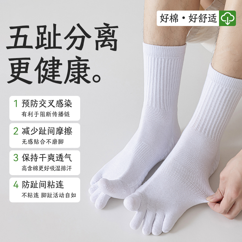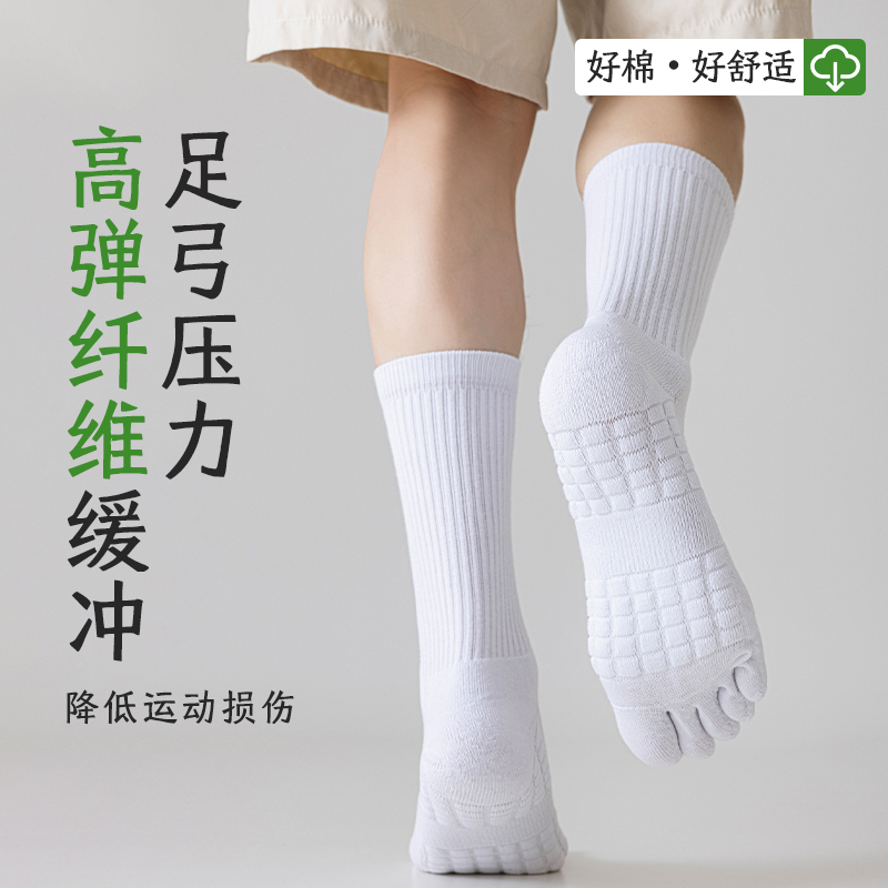 五指袜子男春秋款中筒袜纯棉无骨防臭运动短筒袜减震按摩底分趾袜