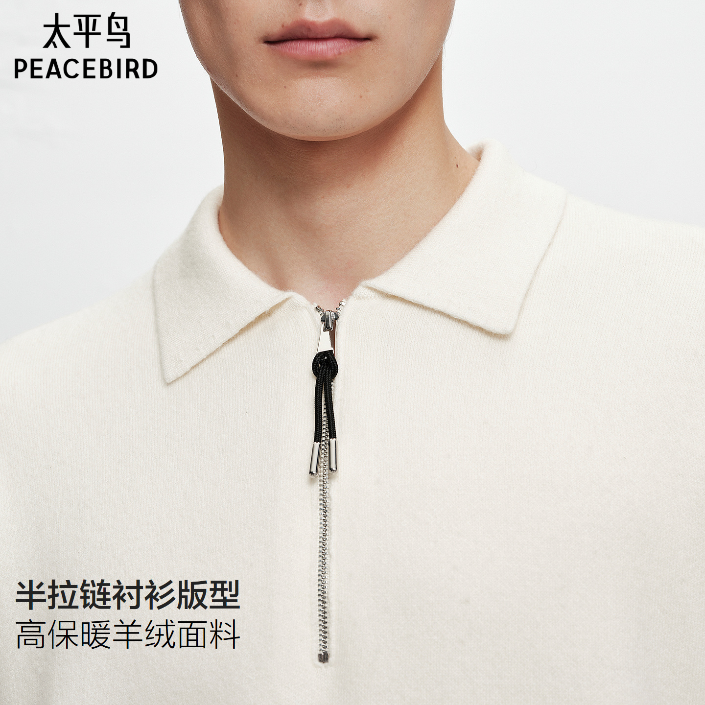 【商场同款】太平鸟男装翻领羊毛衫冬季新款羊绒针织衫B1EBF4B21