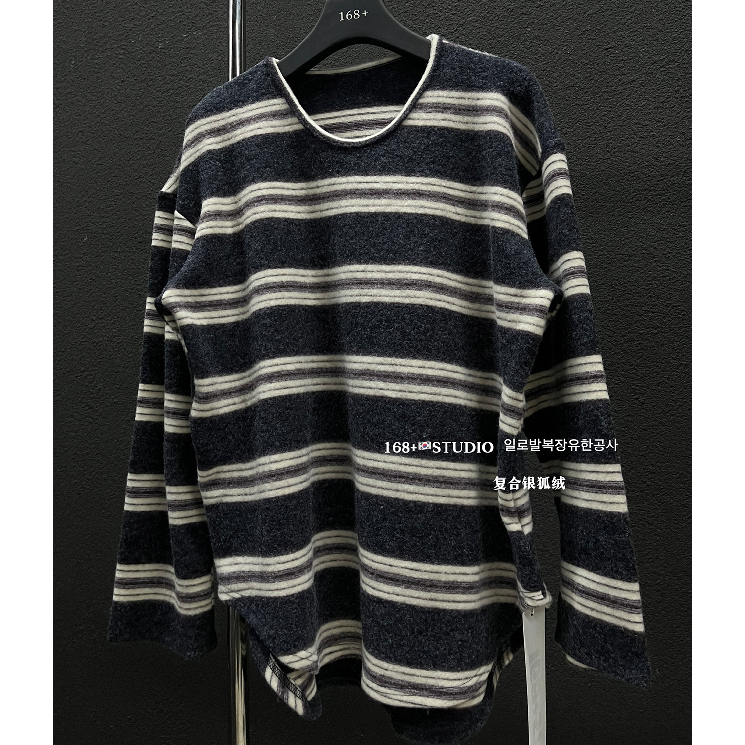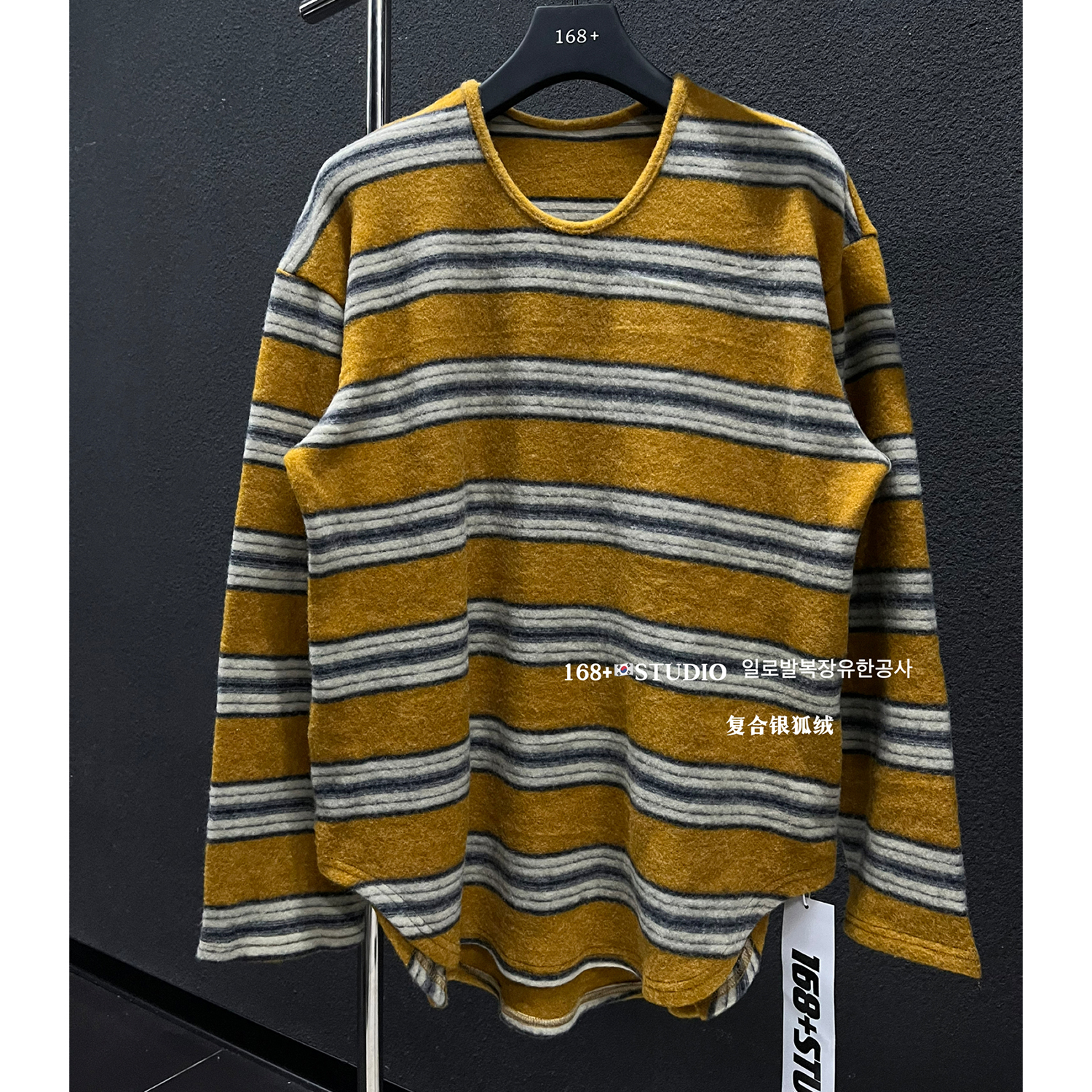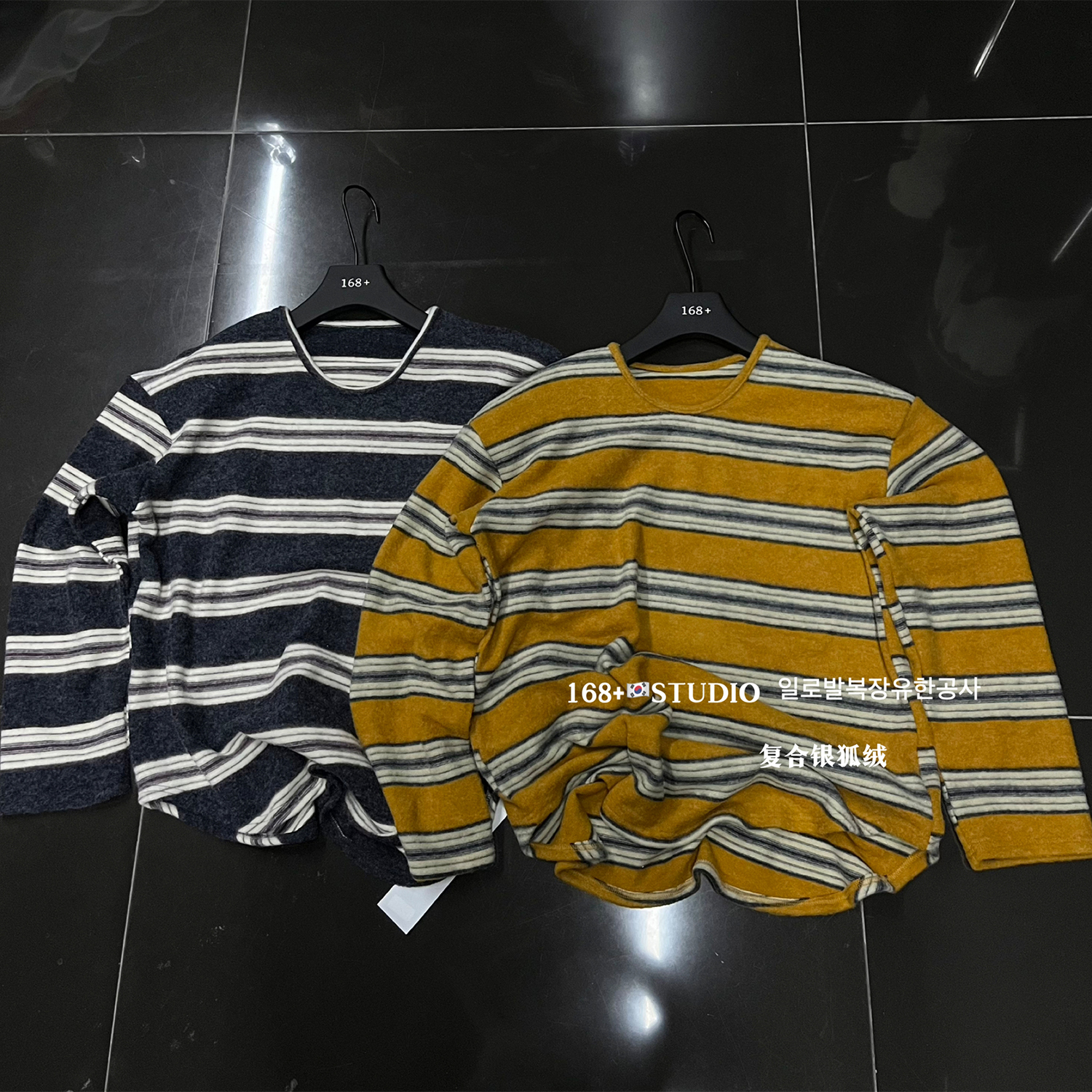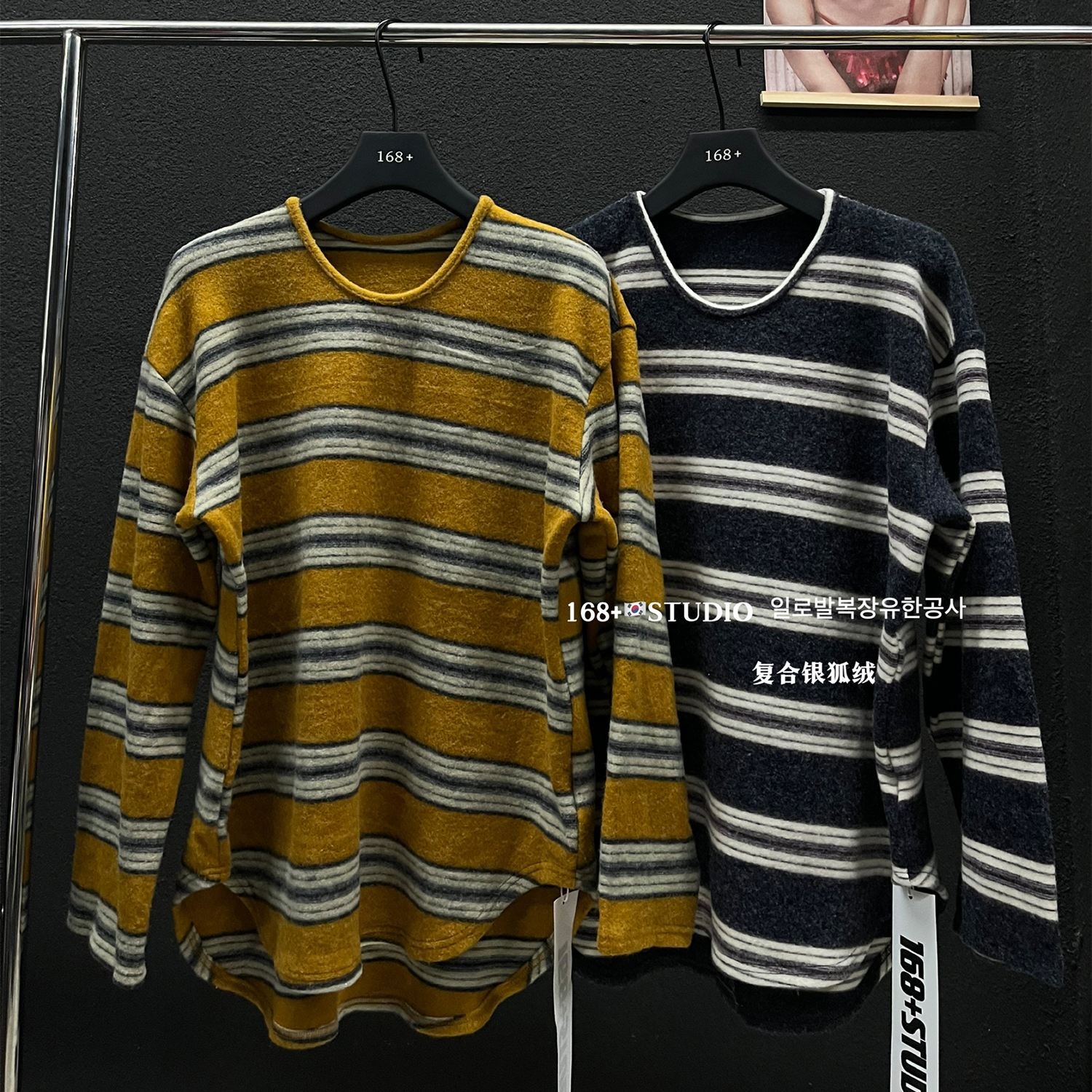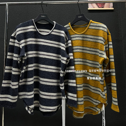 大领口u领条纹撞色打底衫女秋冬宽松韩版中长款长袖t恤遮屁股上衣
