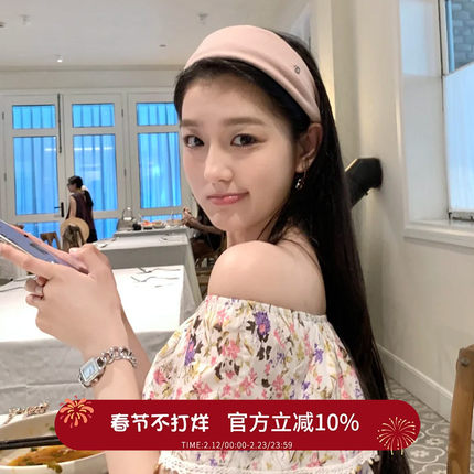 温雅少女!银标爱心粉色宽边发箍!日常外戴高颅顶时尚头箍女秋冬