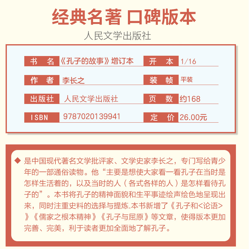 孔子的故事李长之人民文学出版社小学生课外阅读书籍三四五六年级必的读儿童文学短篇故事荐推初中生版七八九年级读物畅销书排行榜